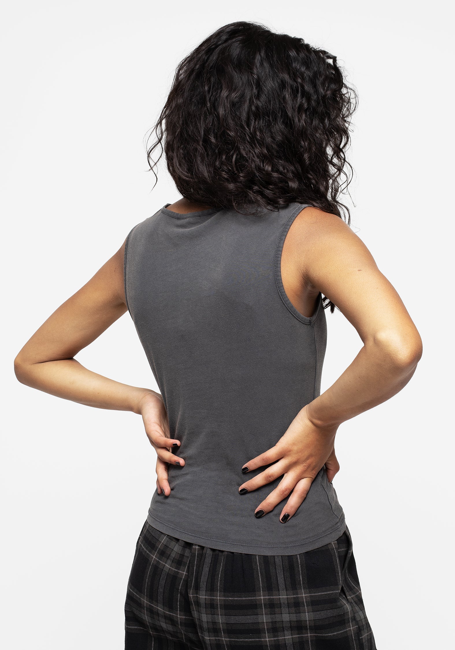 - Classic crew neck with cut-off sleeve effect to edge up your look