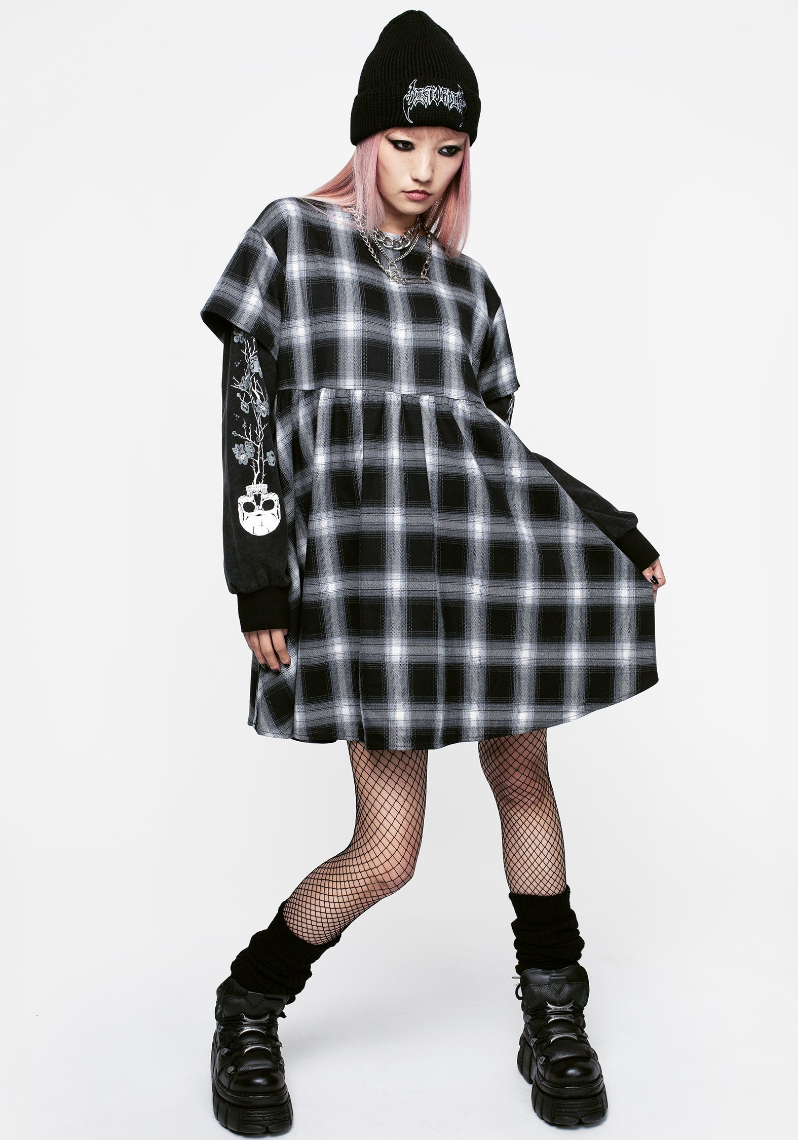 Hypnos Layered Sleeve Check Mini Smock Dress