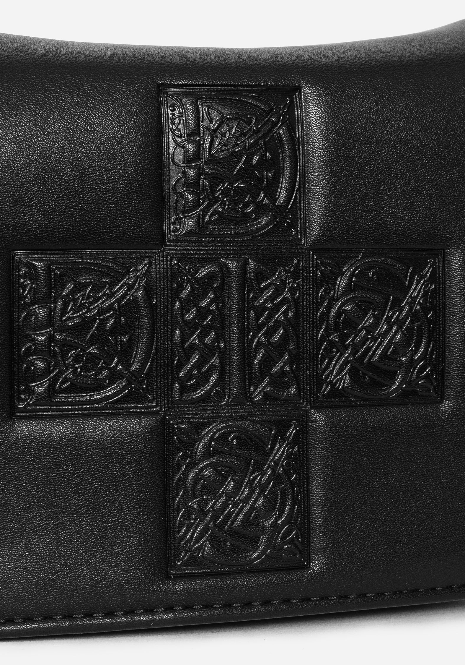 - Chunky matte black chain strap removable via lobster clasps (carry as a crossbody, shoulder or clutch bag)