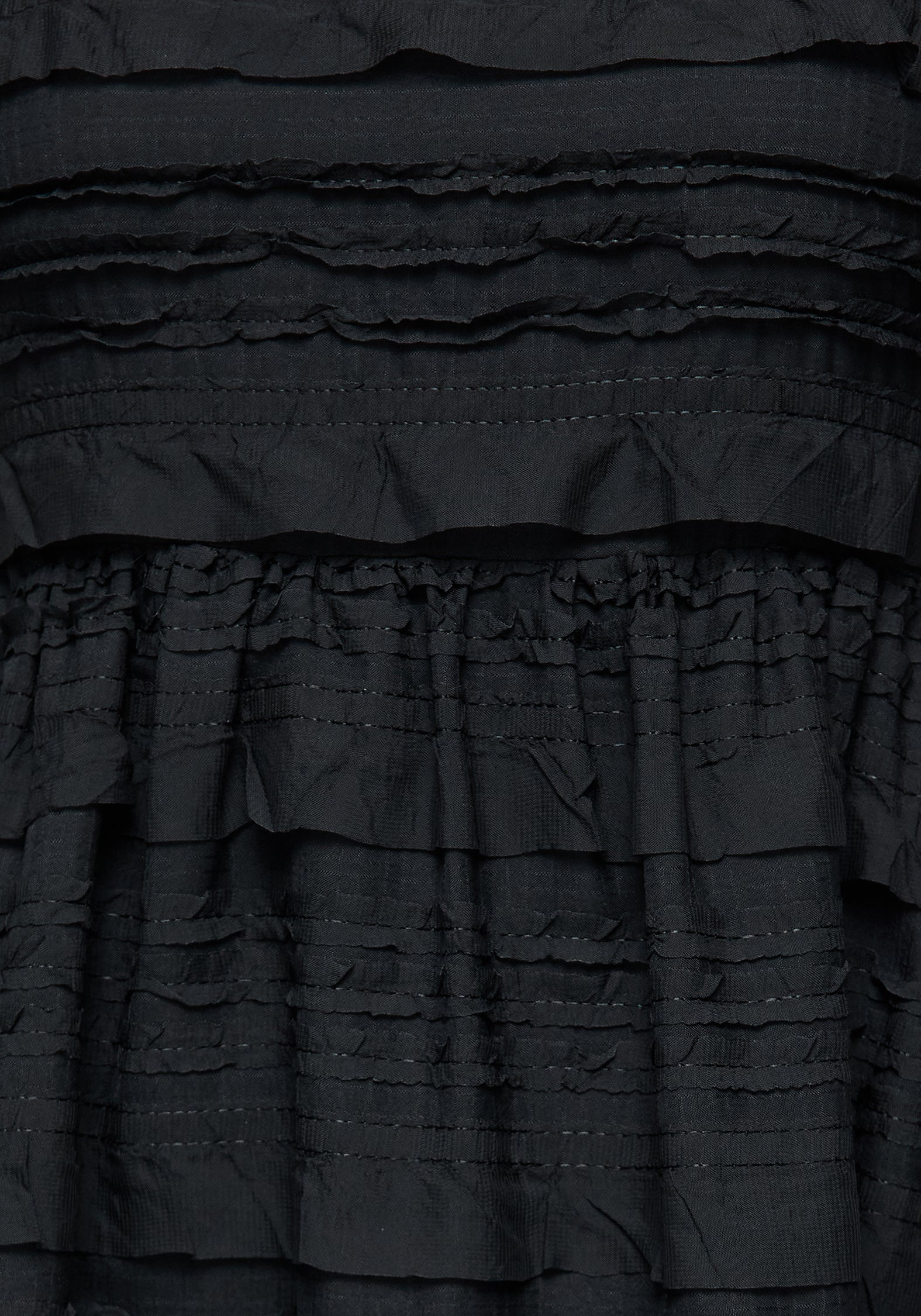 - Sheer mesh fabrication with sewn-on ruffle detail to add dimension