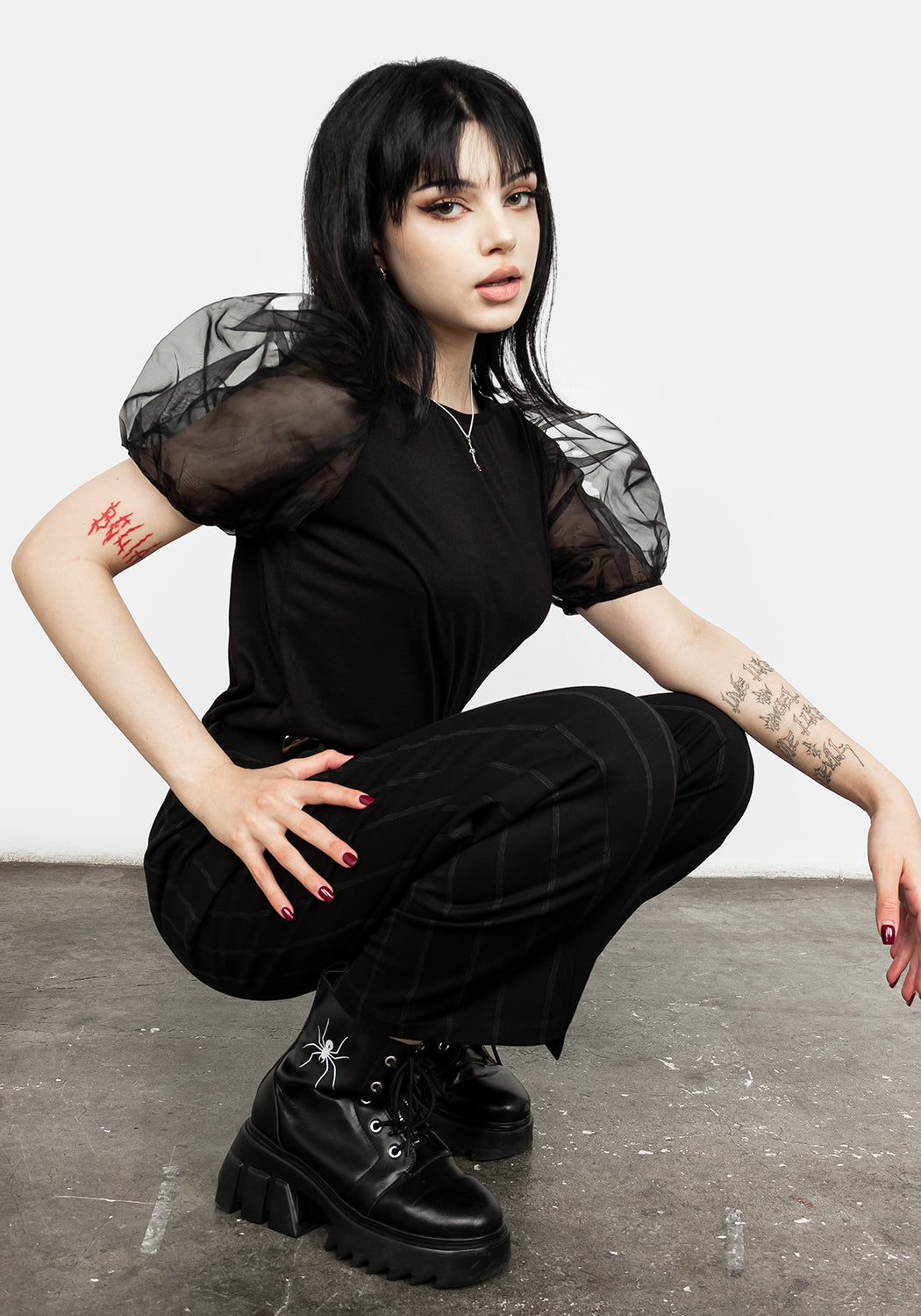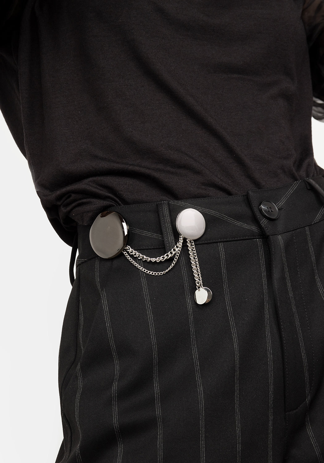 ■ Metal chain loop trim on waistband (antique silver / high-shine silver)