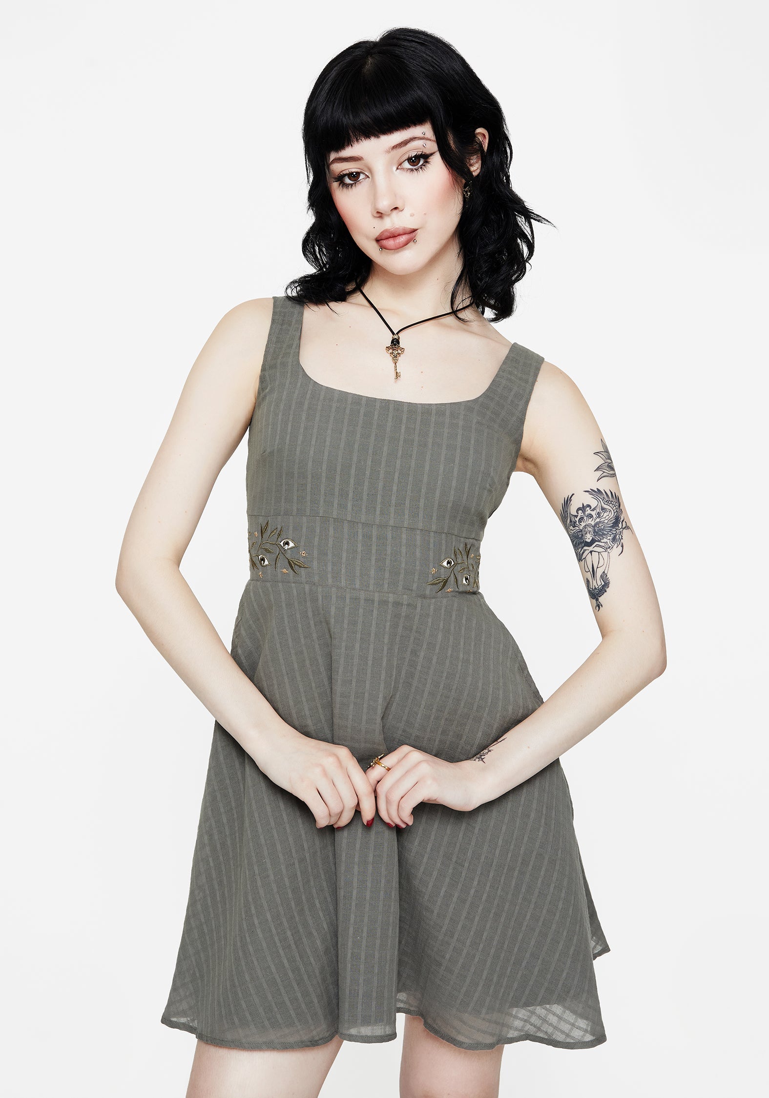 - Green Embroidered Pinafore Dress