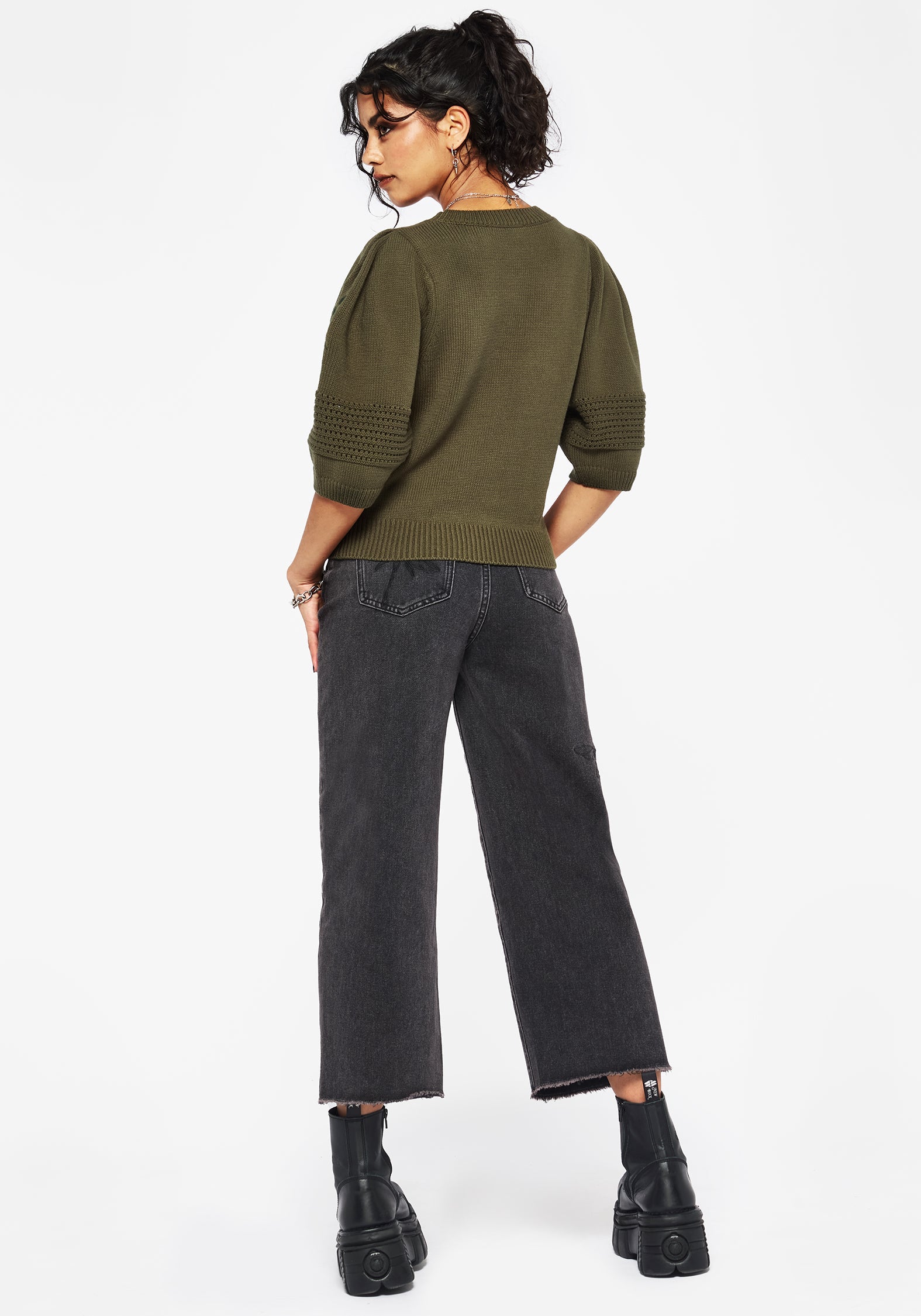Lavish Mushroom Embroidered Short Sleeve Knit Top
