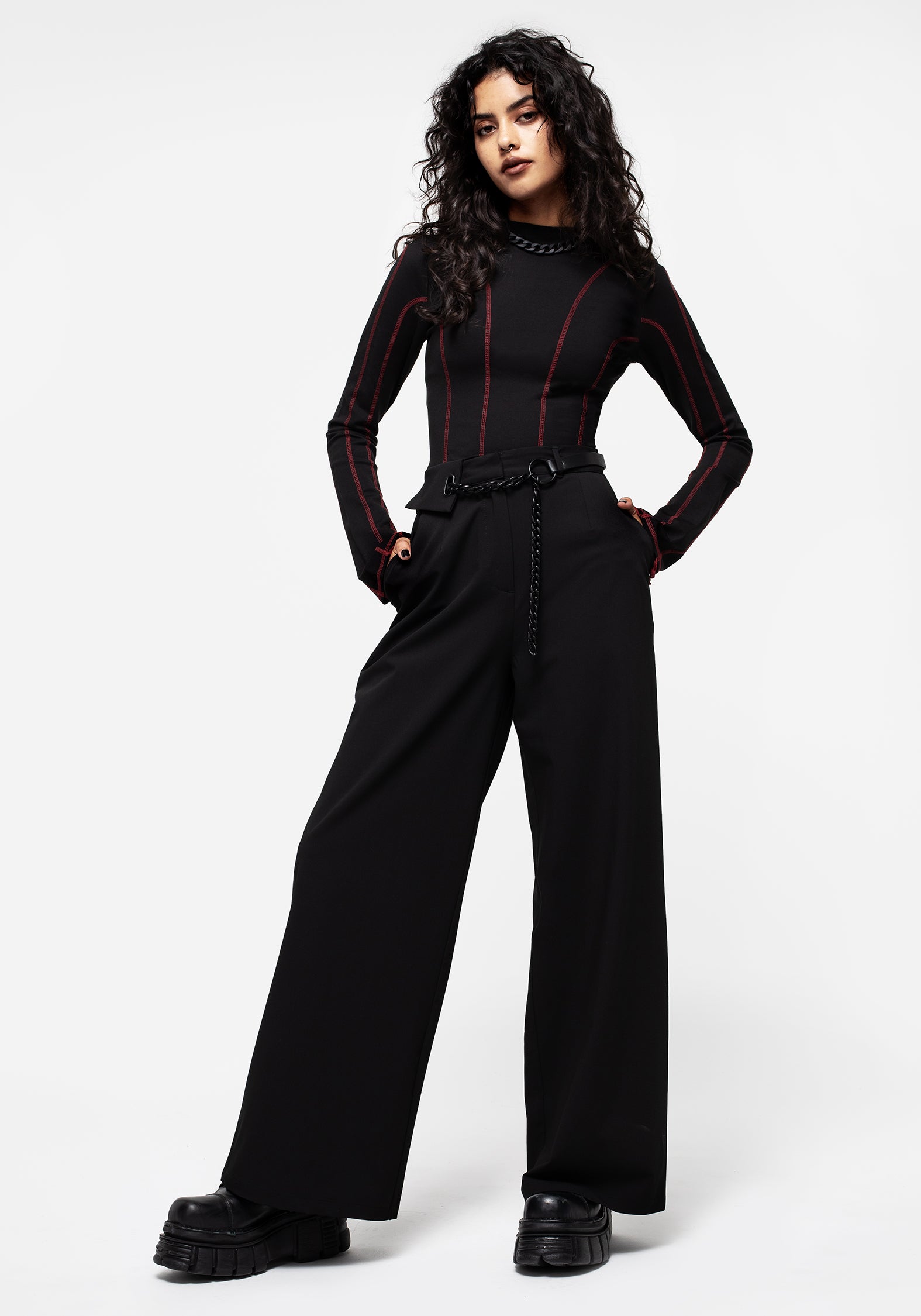- Red overlocked seam detail on body & sleeves with stylised loose thread feature