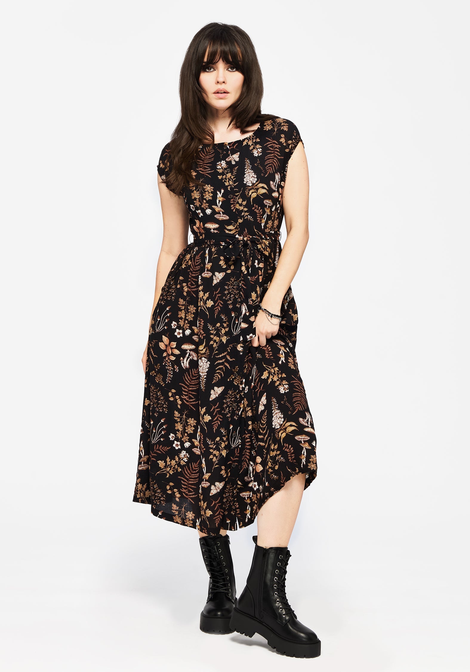 Luthien Crinkle Printed Button Up Midi Dress