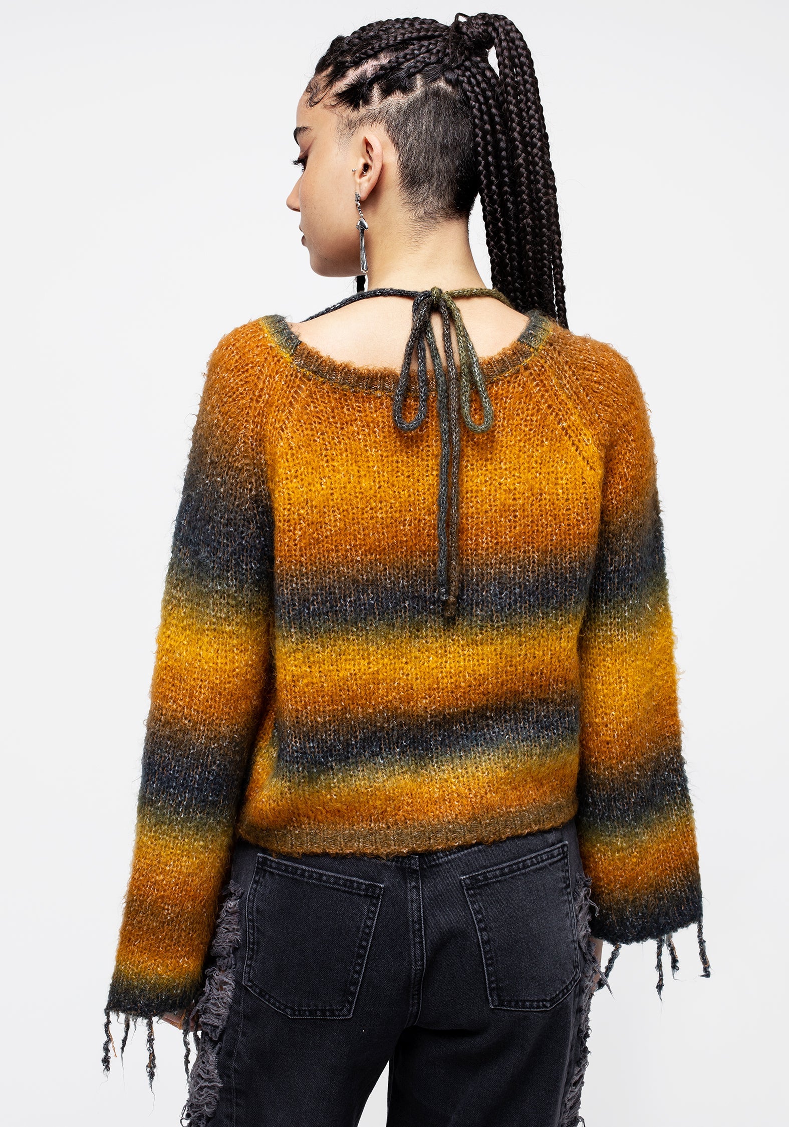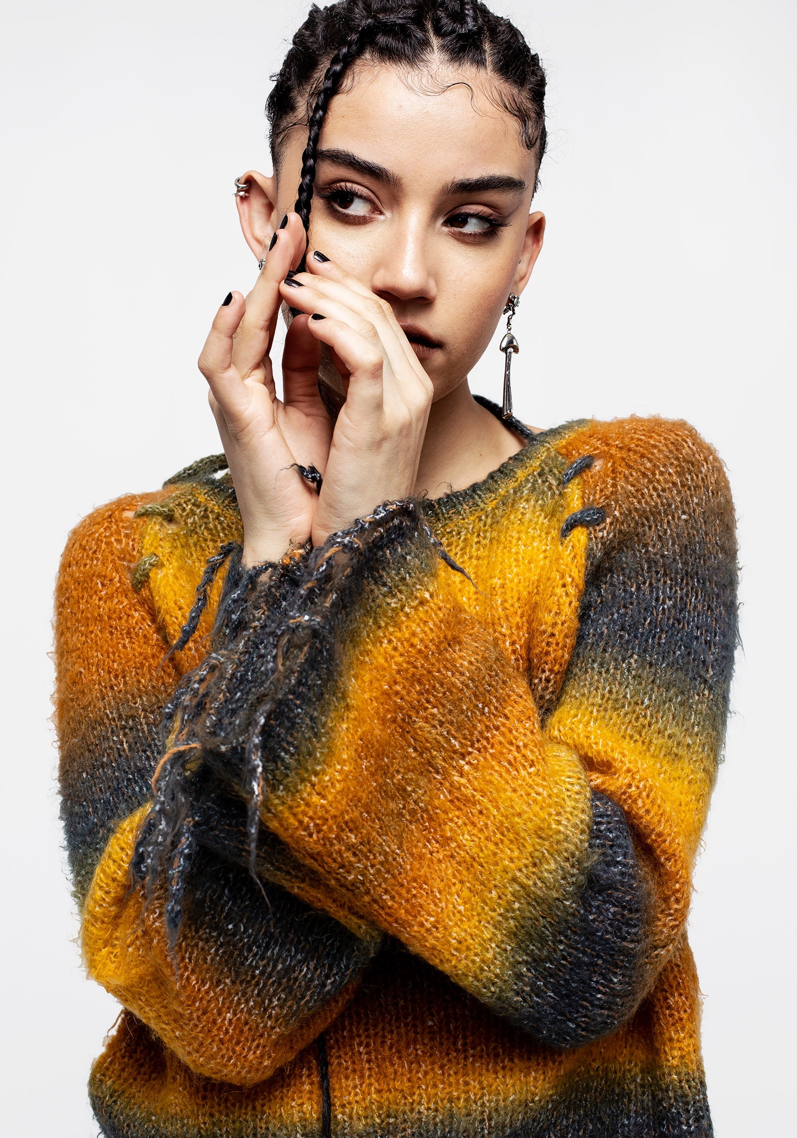 - Fuzzy knit fabrication in warm, earthy tones to connect to the goblin side of nature