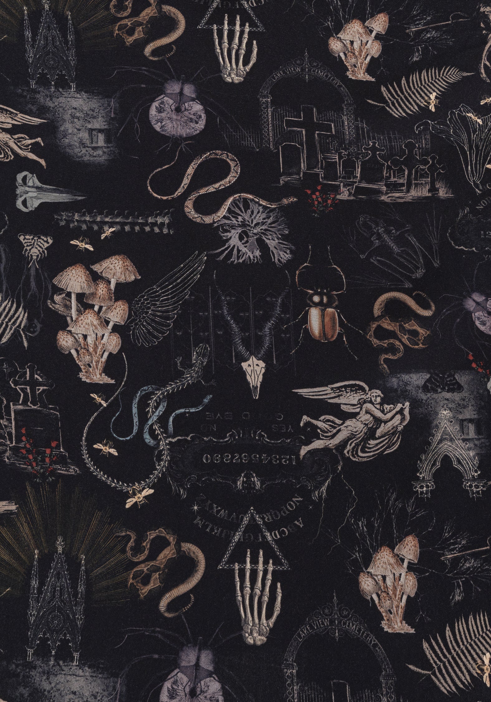 - Ghoulish Victorian-inspired skeleton print (all-over design)