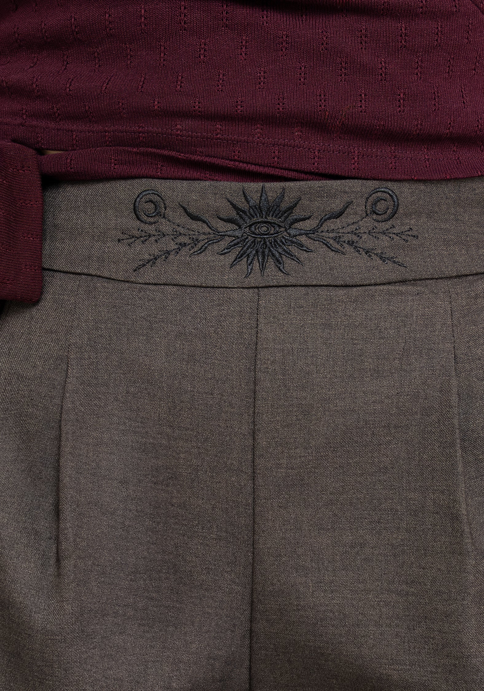 - Black mystical floral eye & moon embroidery on centre-front waistband