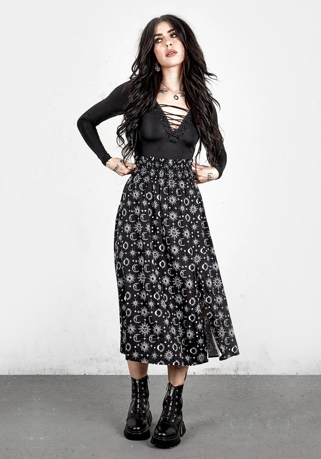 ❦ Black long sleeve lace-up bodysuit