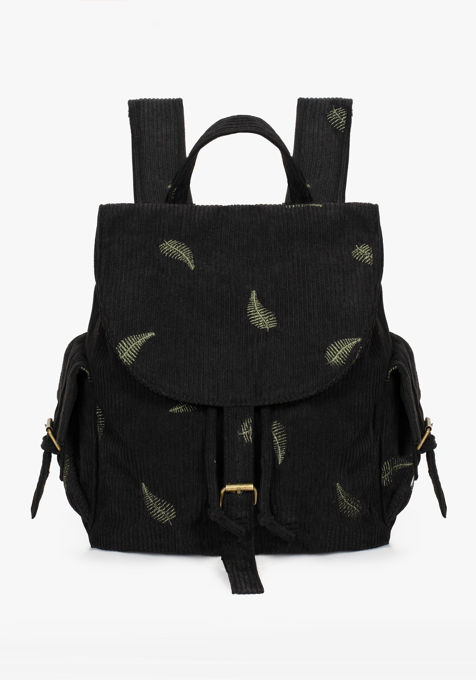 - Velvety corded fabrication with delicate all-over green fern embroidery
