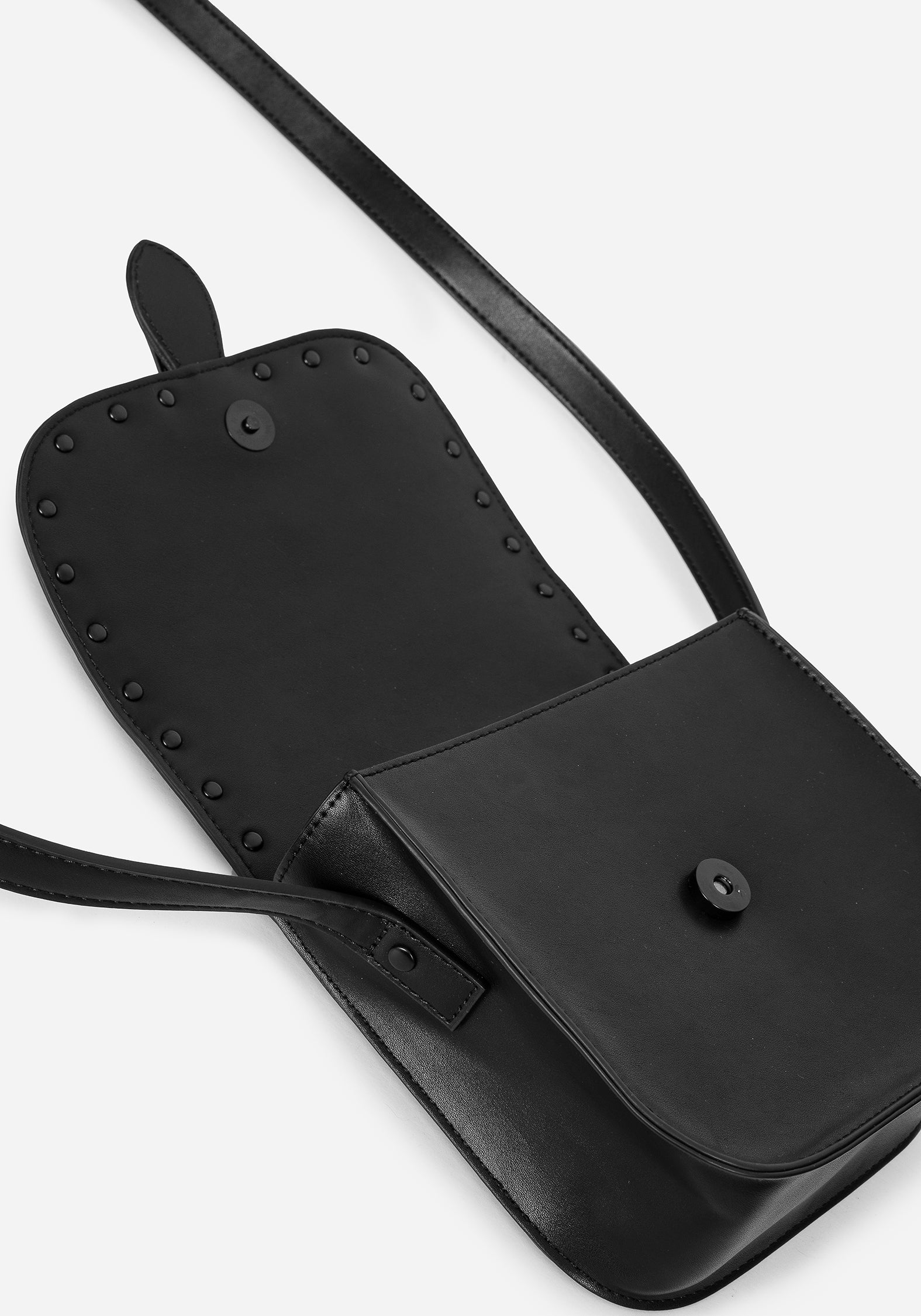 - Black bat embroidered faux leather mini crossbody satchel bag