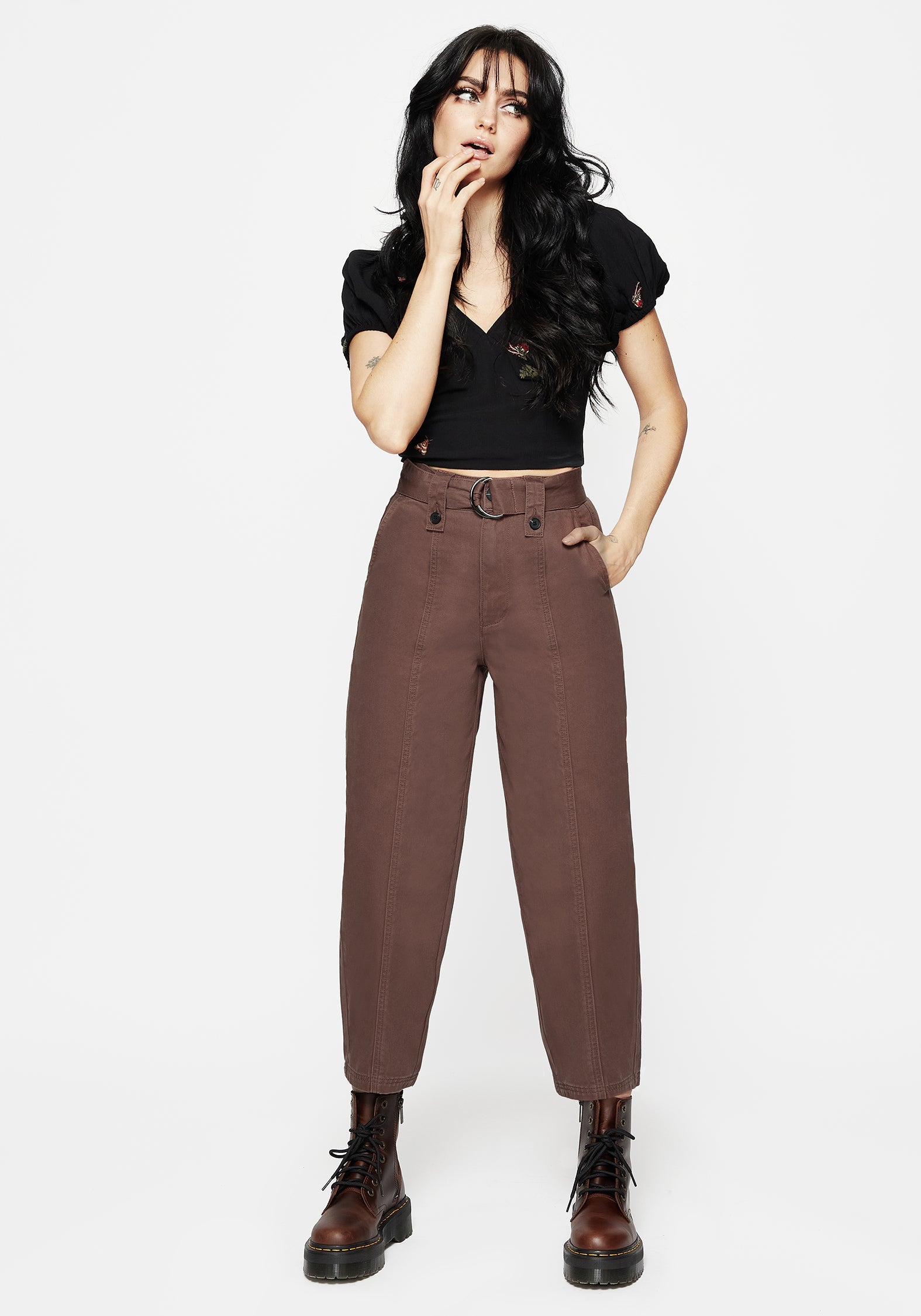- Dusty Rose Brown Denim Embroidered Balloon Trousers
