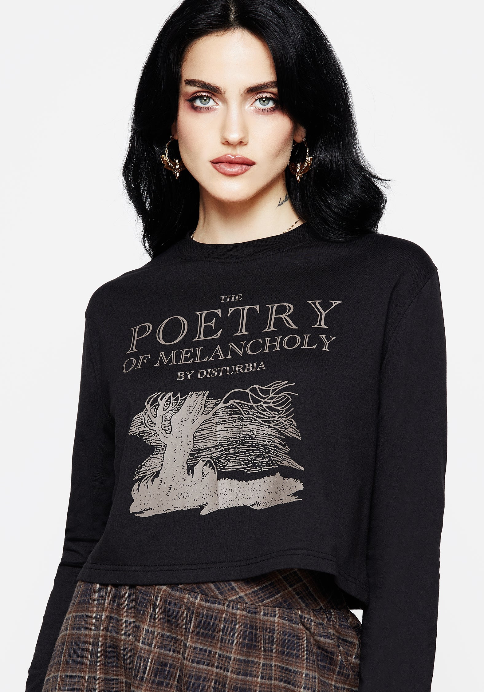 Poetry of Melancholy Graphic Print Long Sleeve Crop Top