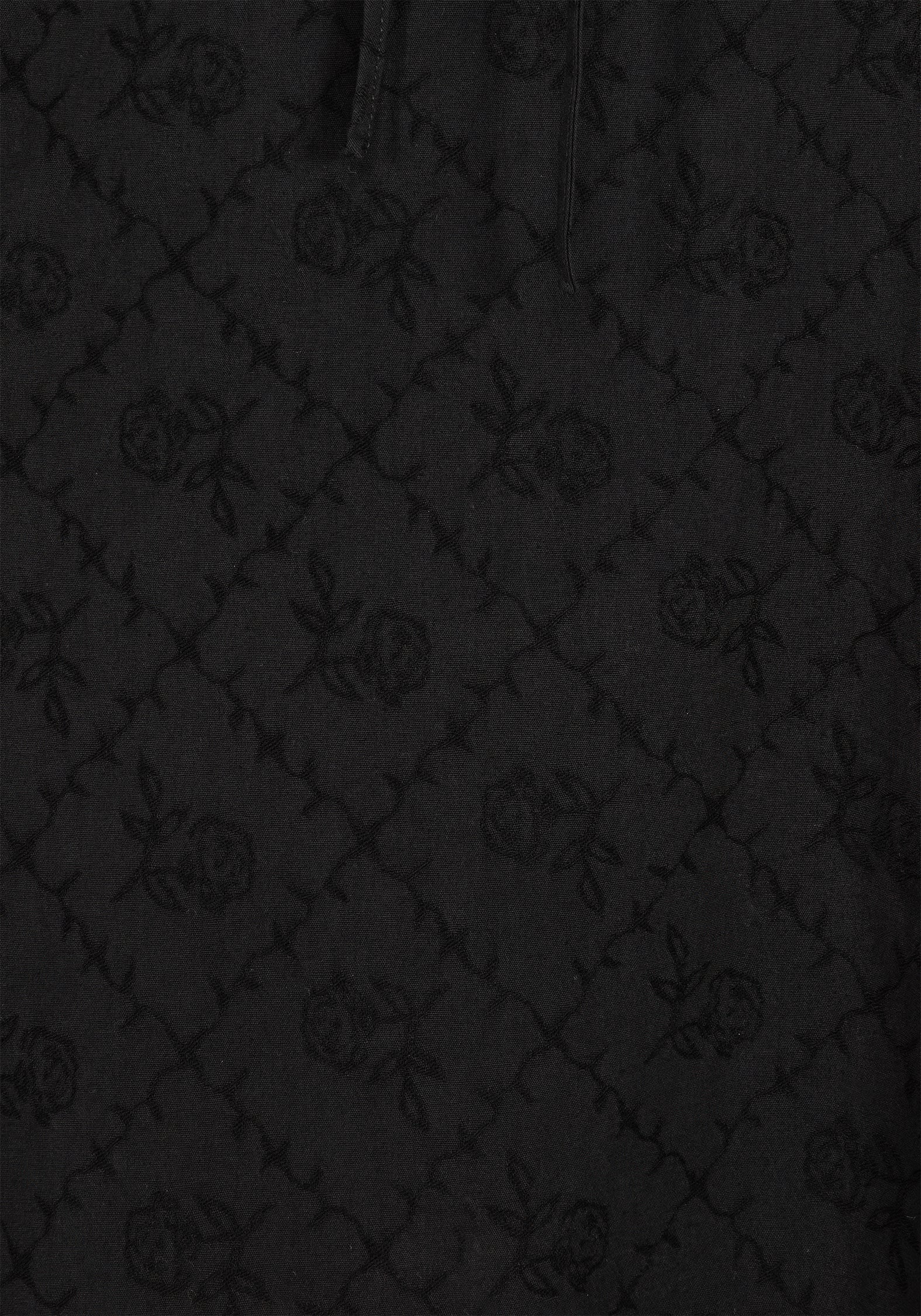 - Cotton-blend woven fabrication with a jacquard-inspired rose & thorn embroidery