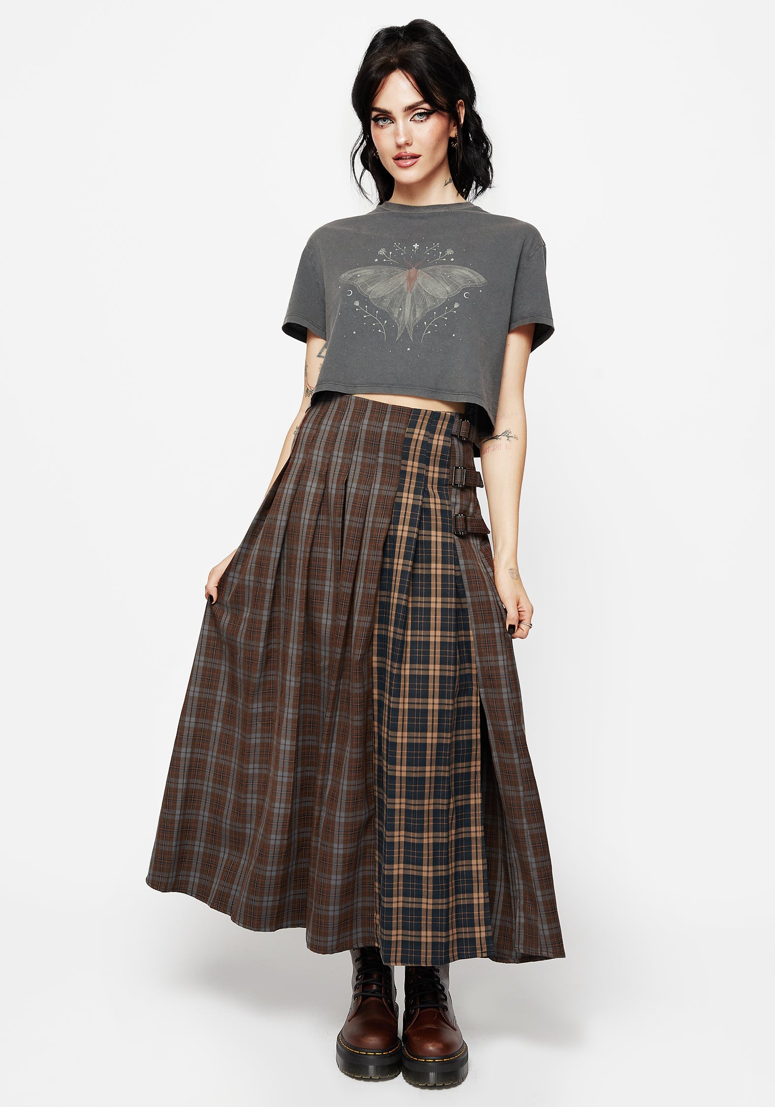 Raven Pleated Check Buckle Detail Maxi Skirt