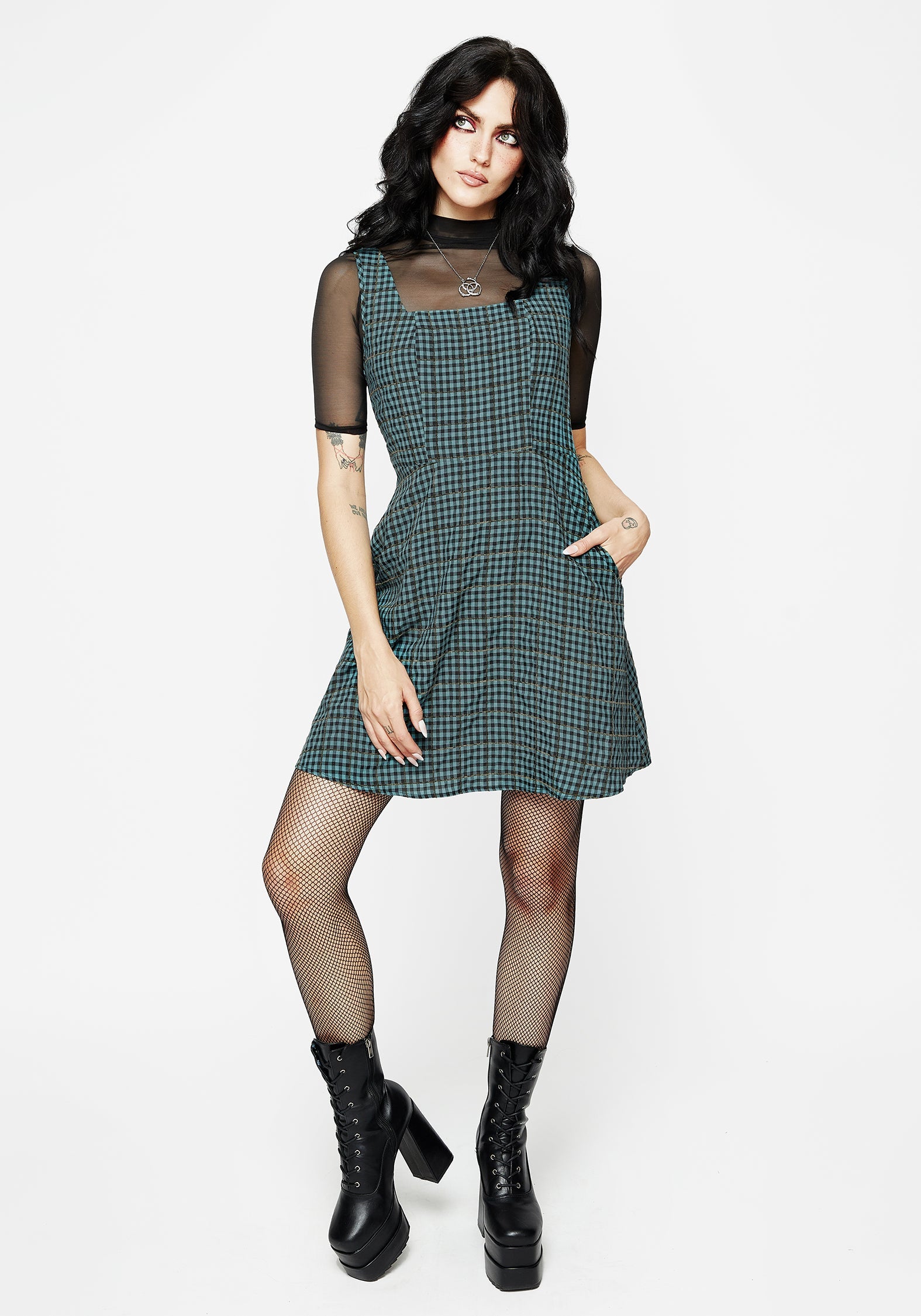 Restless Check Mini Apron Dress
