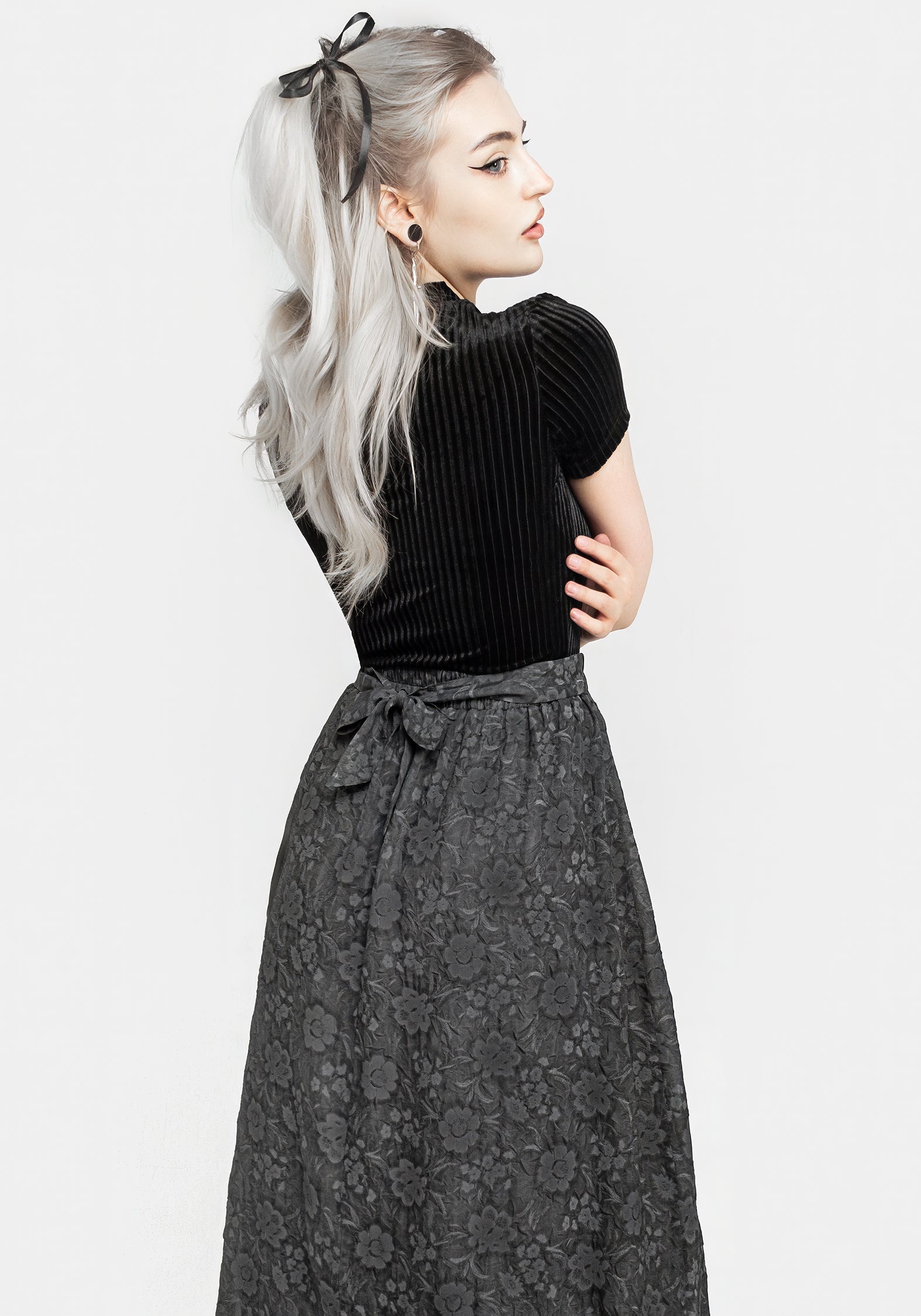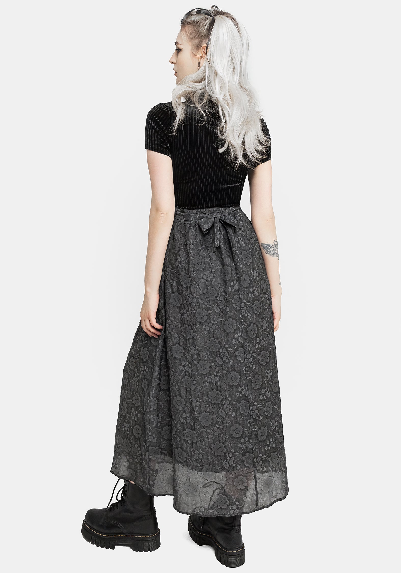 - Grey floral layered midi skirt