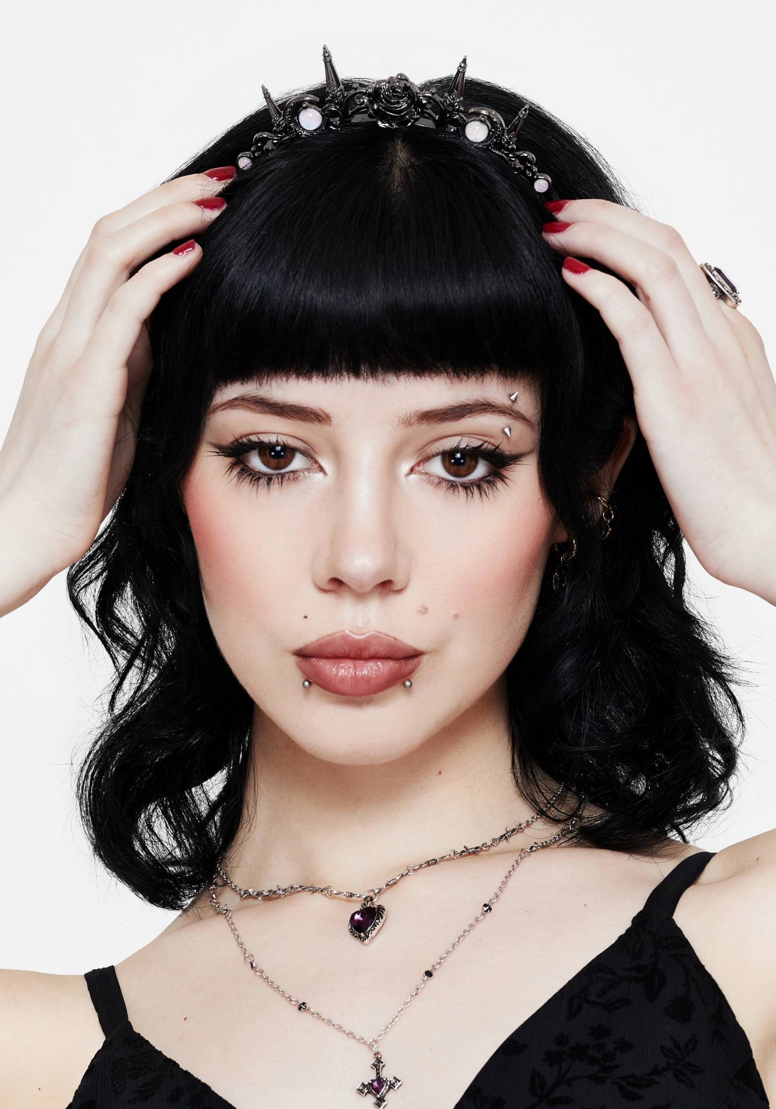 - Gunmetal Black Rose, Dagger & Moonstone Headband