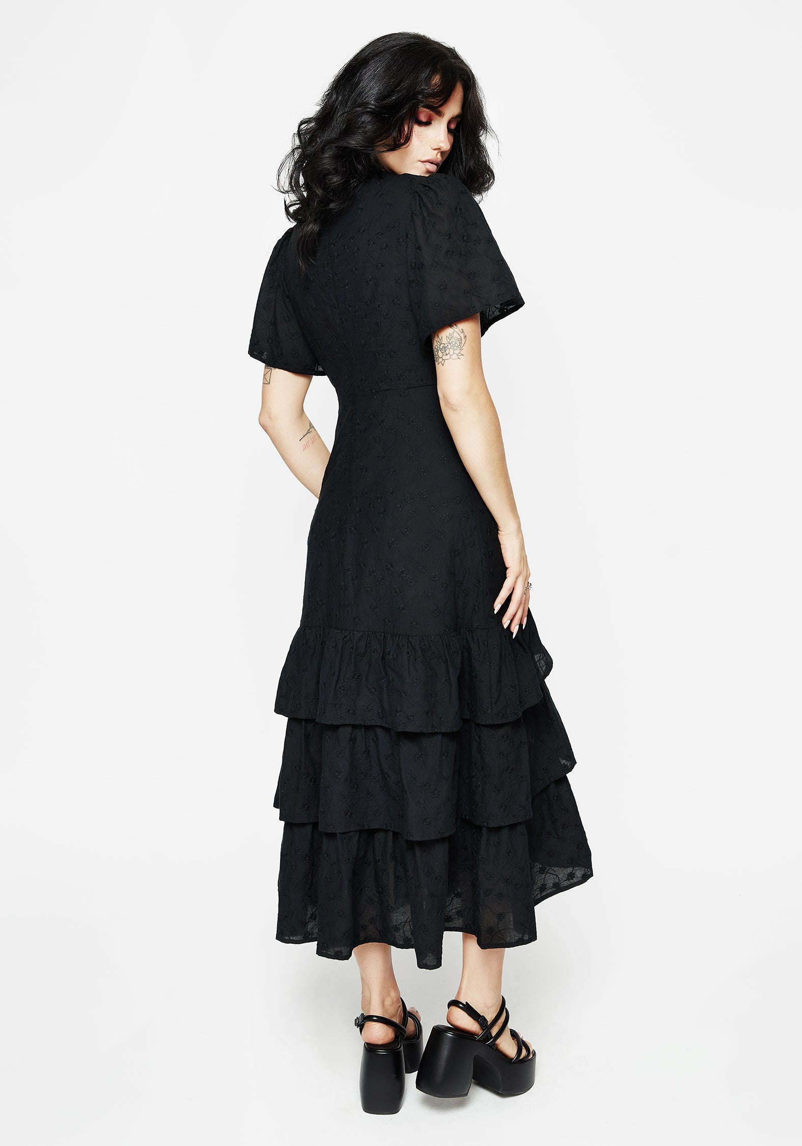 - Angelic floaty short sleeves balance its flowing midaxi skirt