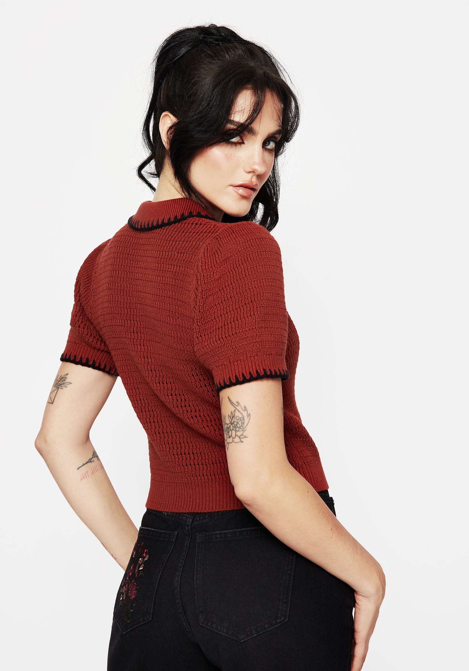 - Red & Black Floral Embroidered Pointelle Button Up Cardigan