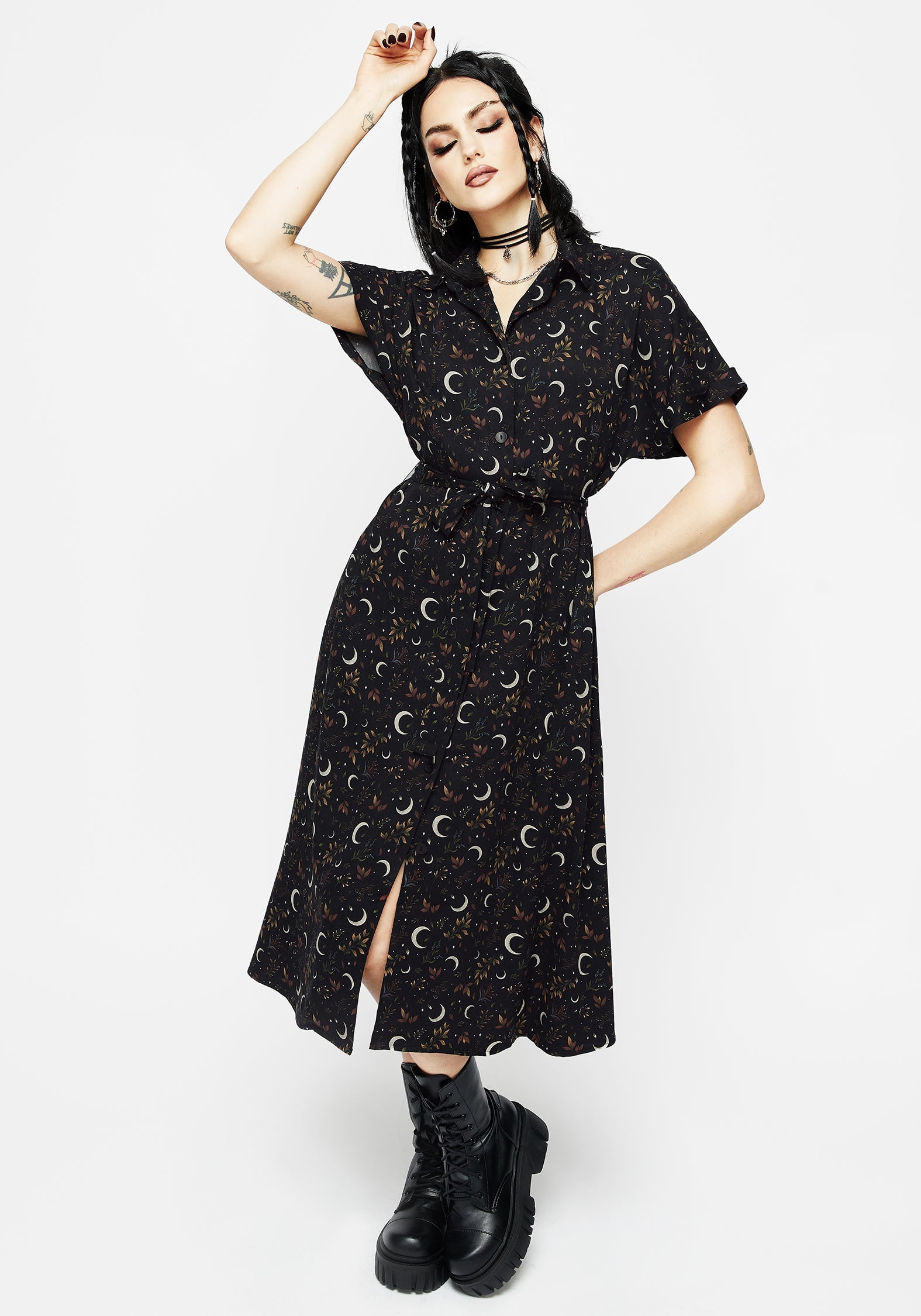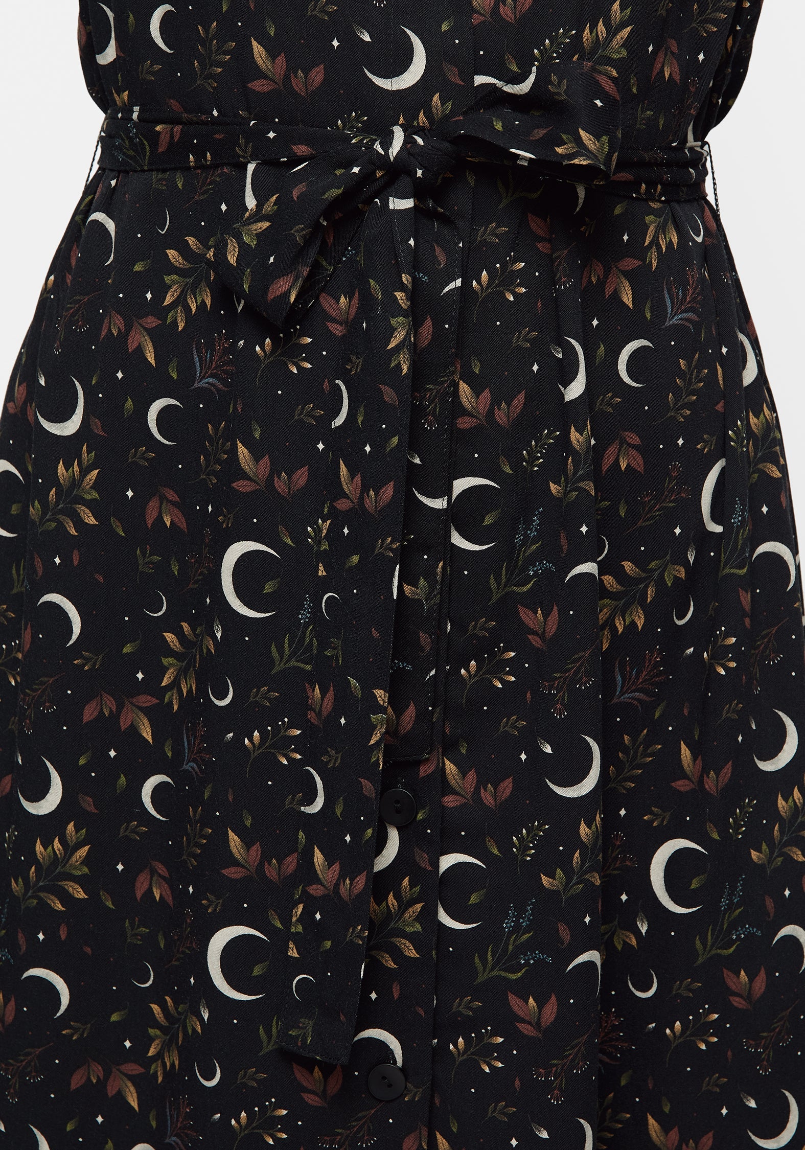 - Silky breathable fabrication with an all-over autumnal leafy moon print