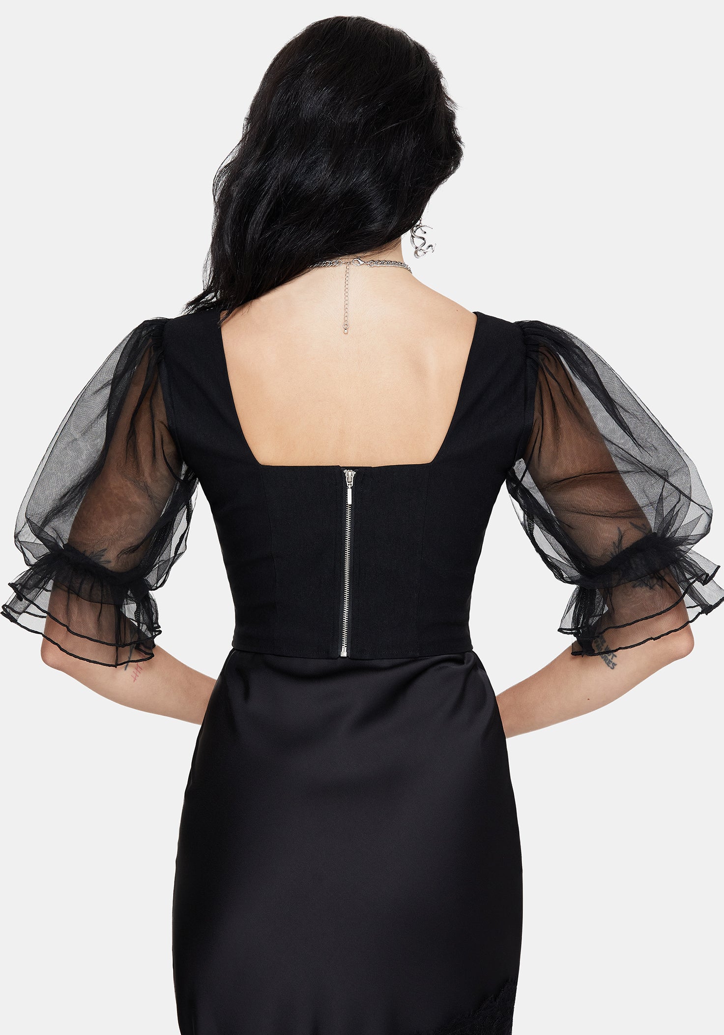 - Black Puff Sleeve Corset Top