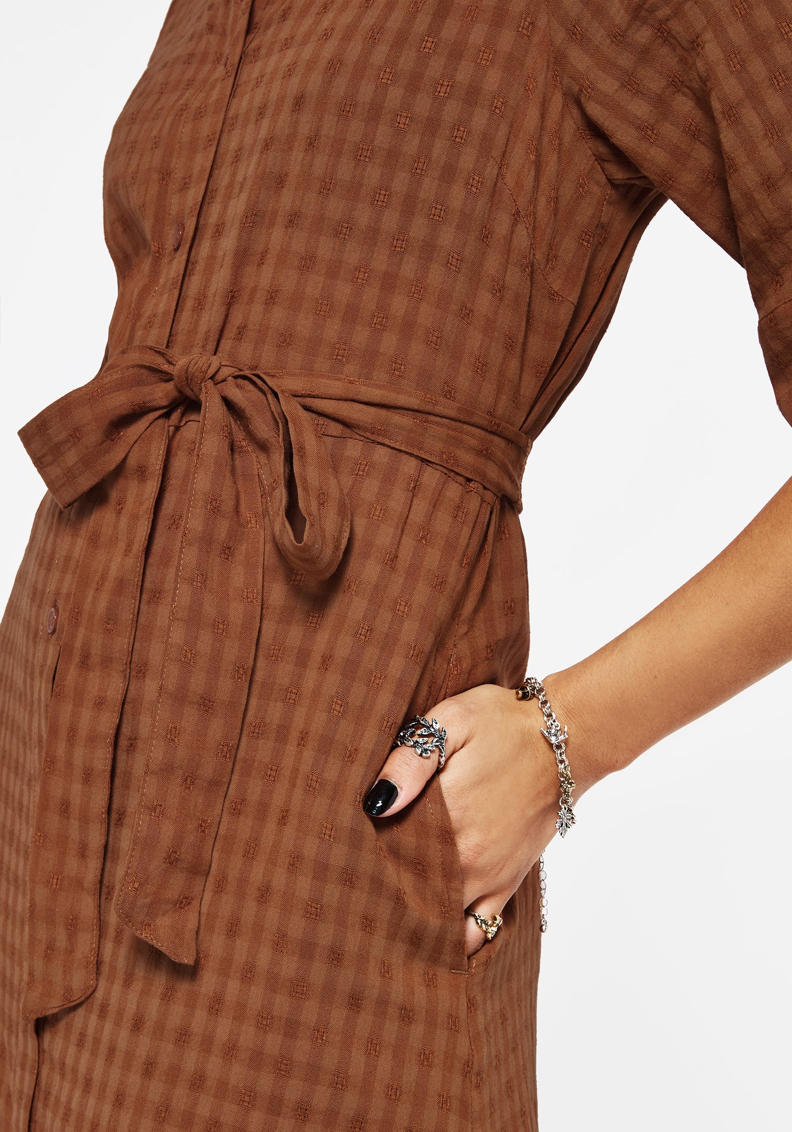 Soleil Cotton-Blend Check Midi Shirt Dress