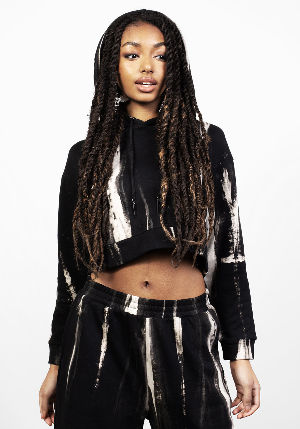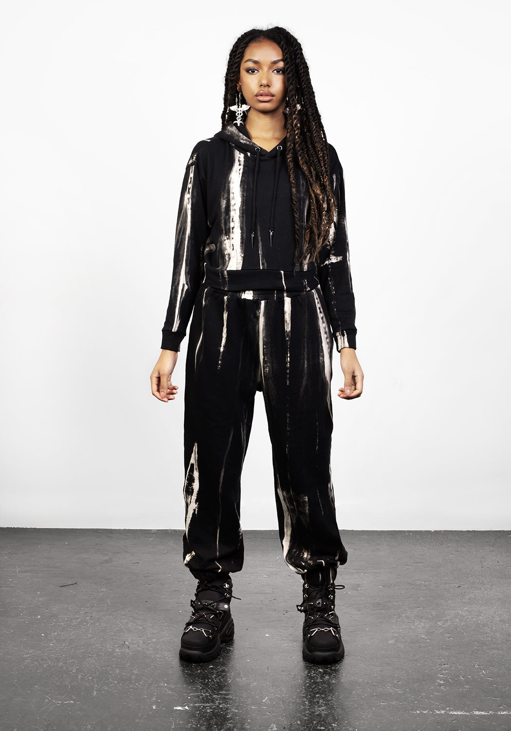 ❥ All-over stripe tie-dye print in grey, black & white (non-stretch fabrication)