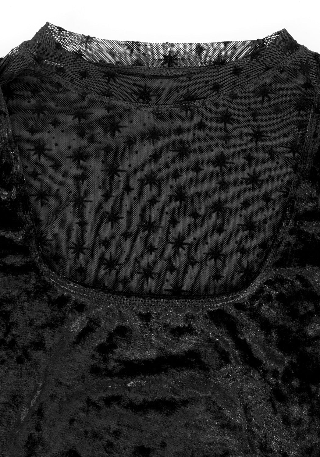 ✶ Mesh top section has mock neck & long sleeves - attaches to dress by waist & side seams
