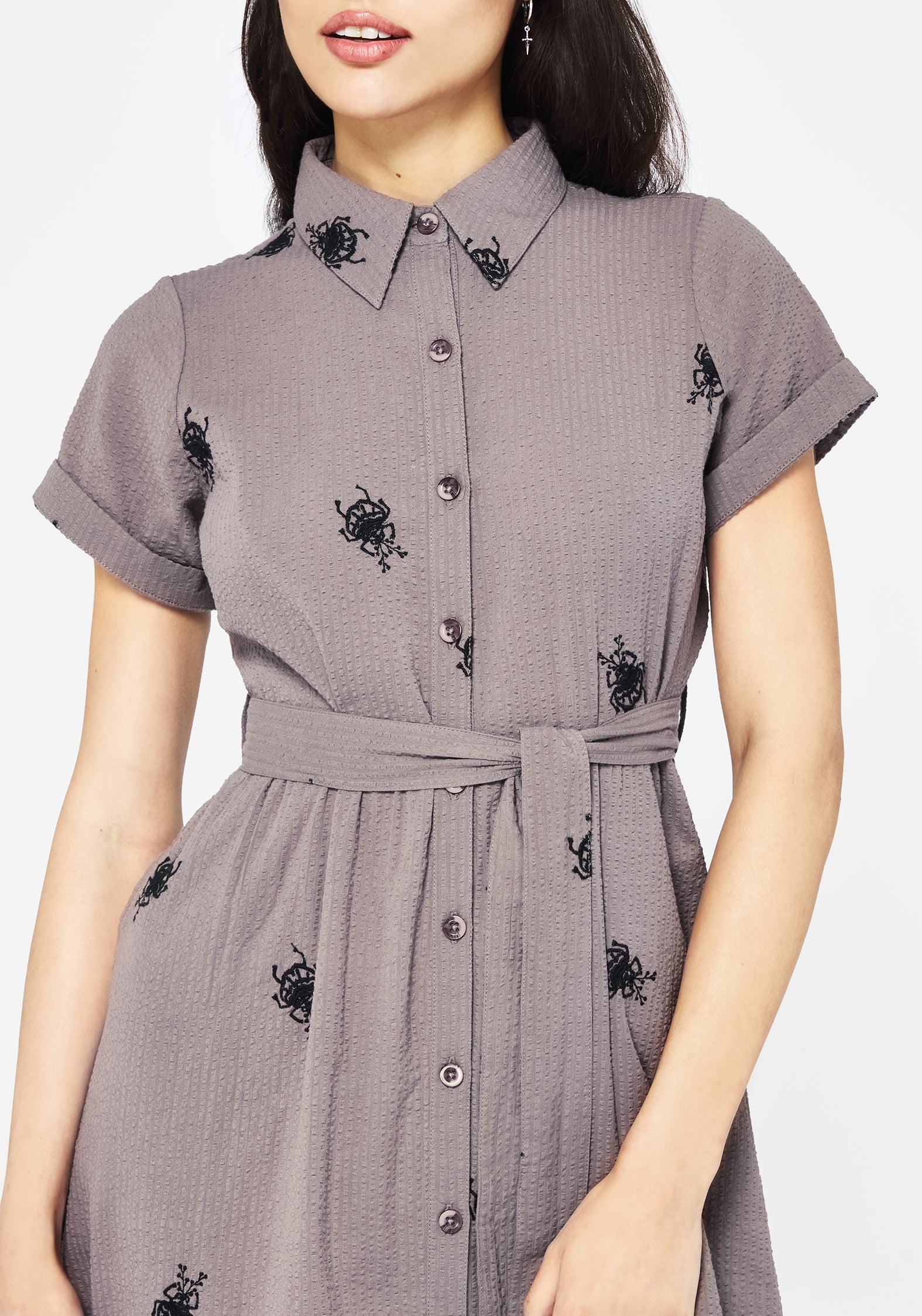 Stag Beetle Embroidered Midi Shirt Dress