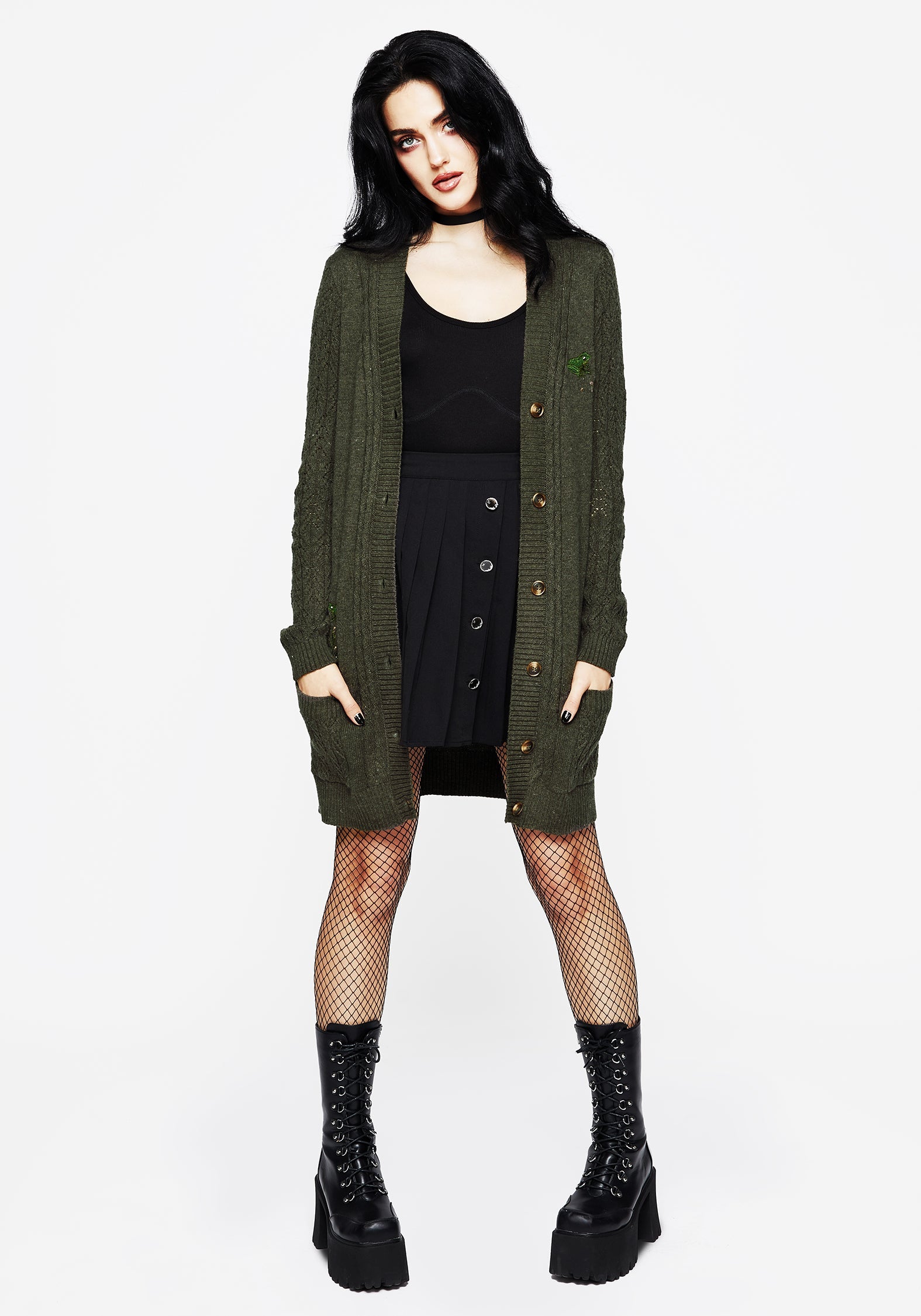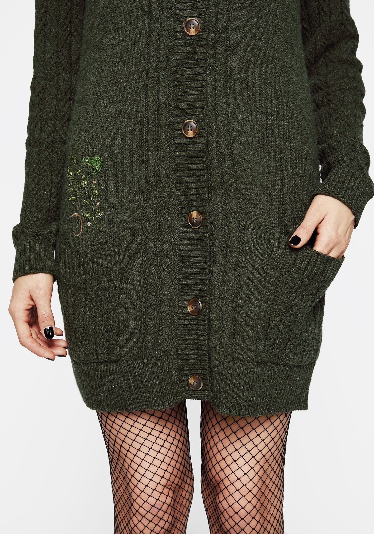 Swamplife Embroidered Cable Knit Longline Cardigan