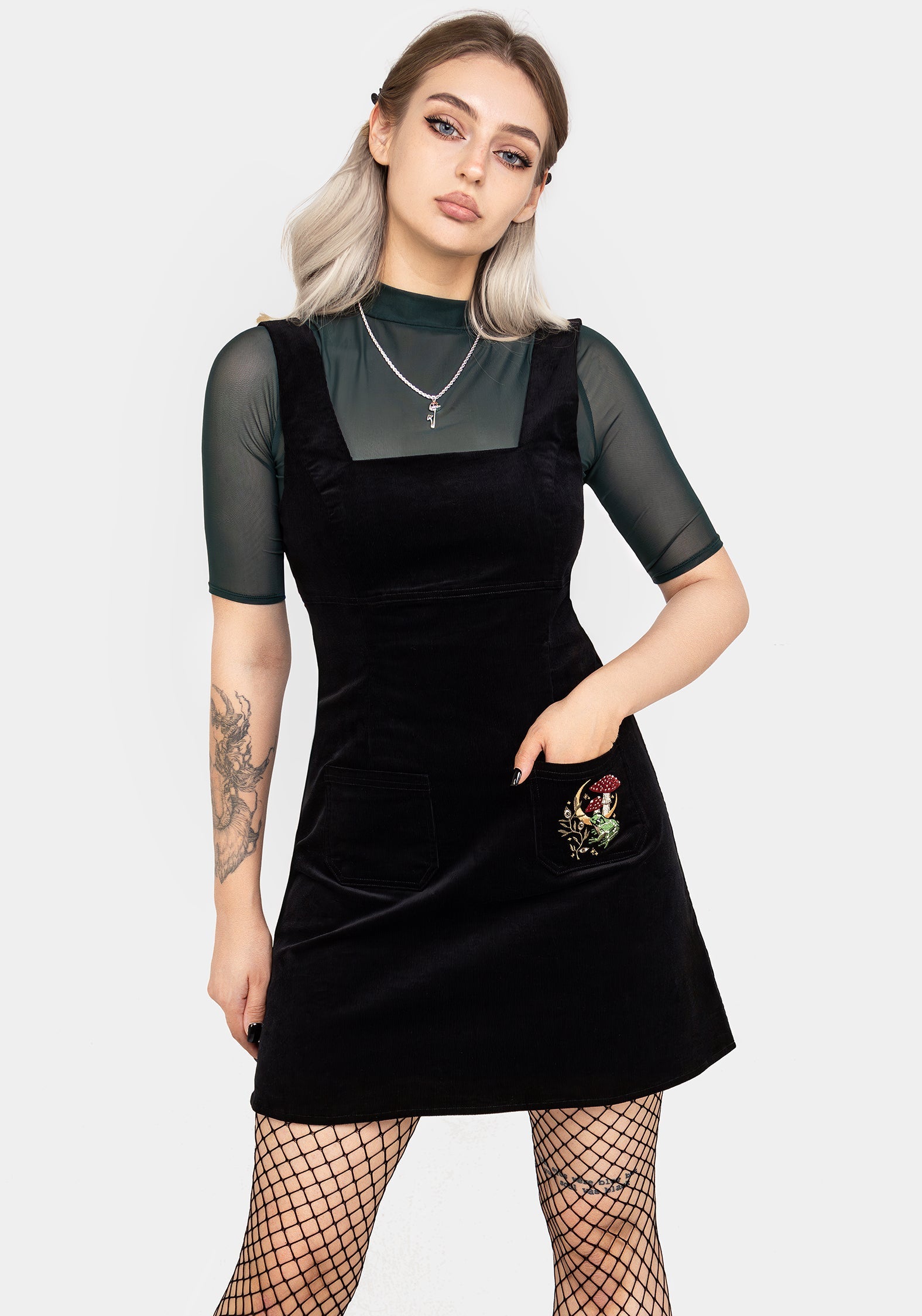 Swamplife Embroidered Cord Mini Pinafore Dress
