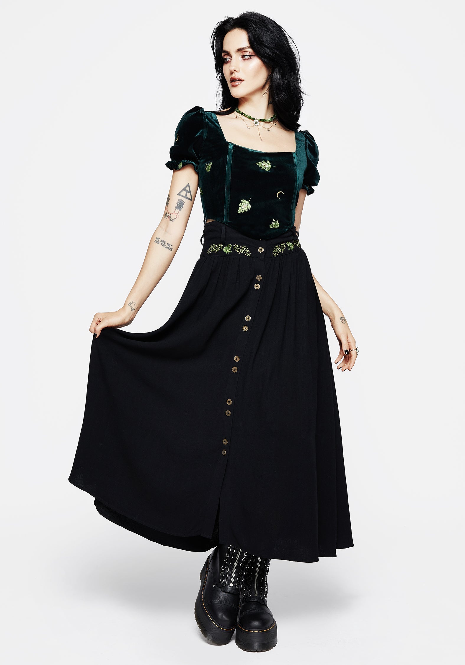 Swamplife Frog Embroidered Velour Puff Sleeve Corset Top