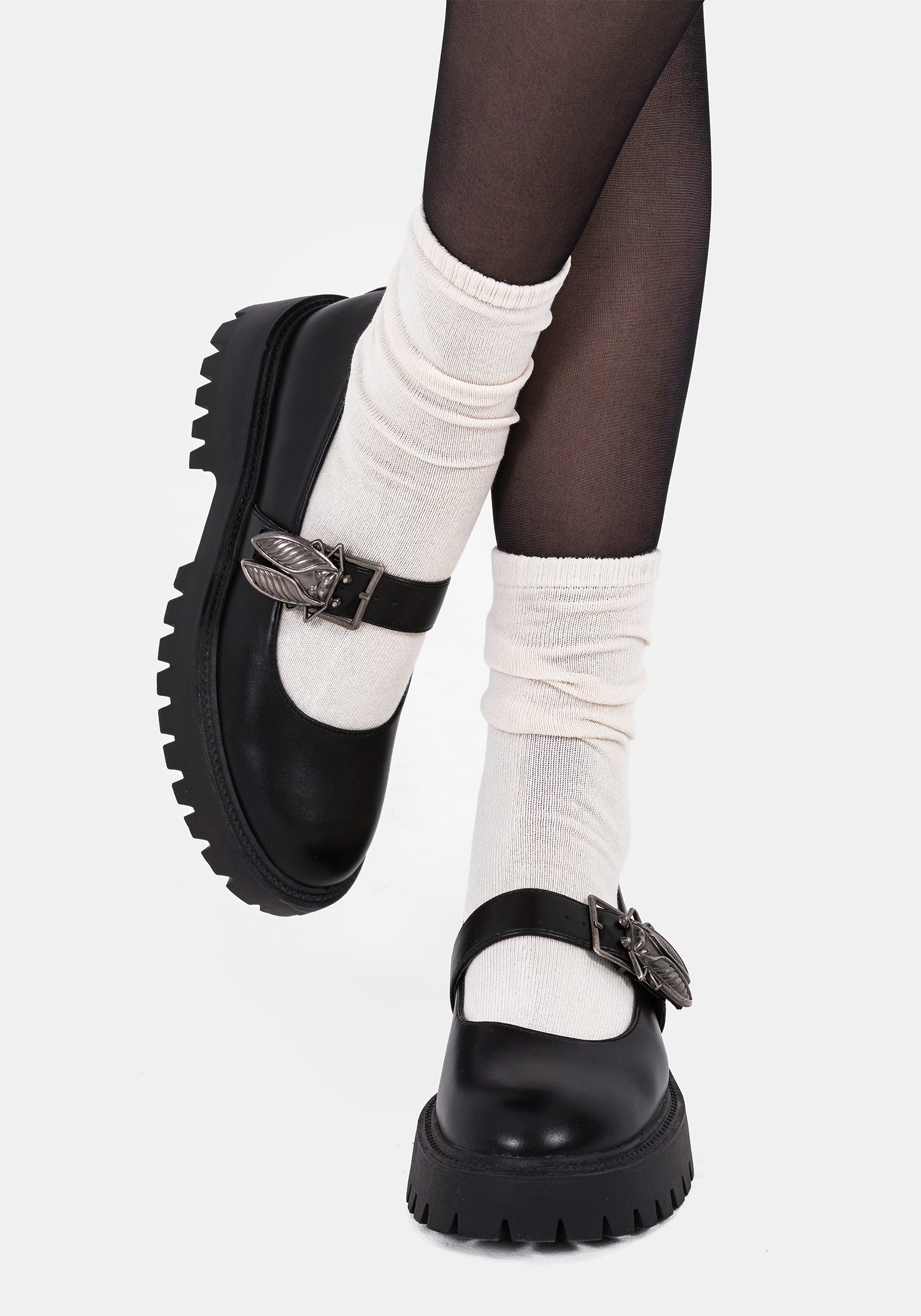 - Black Faux Leather Bug Buckle Mary Janes