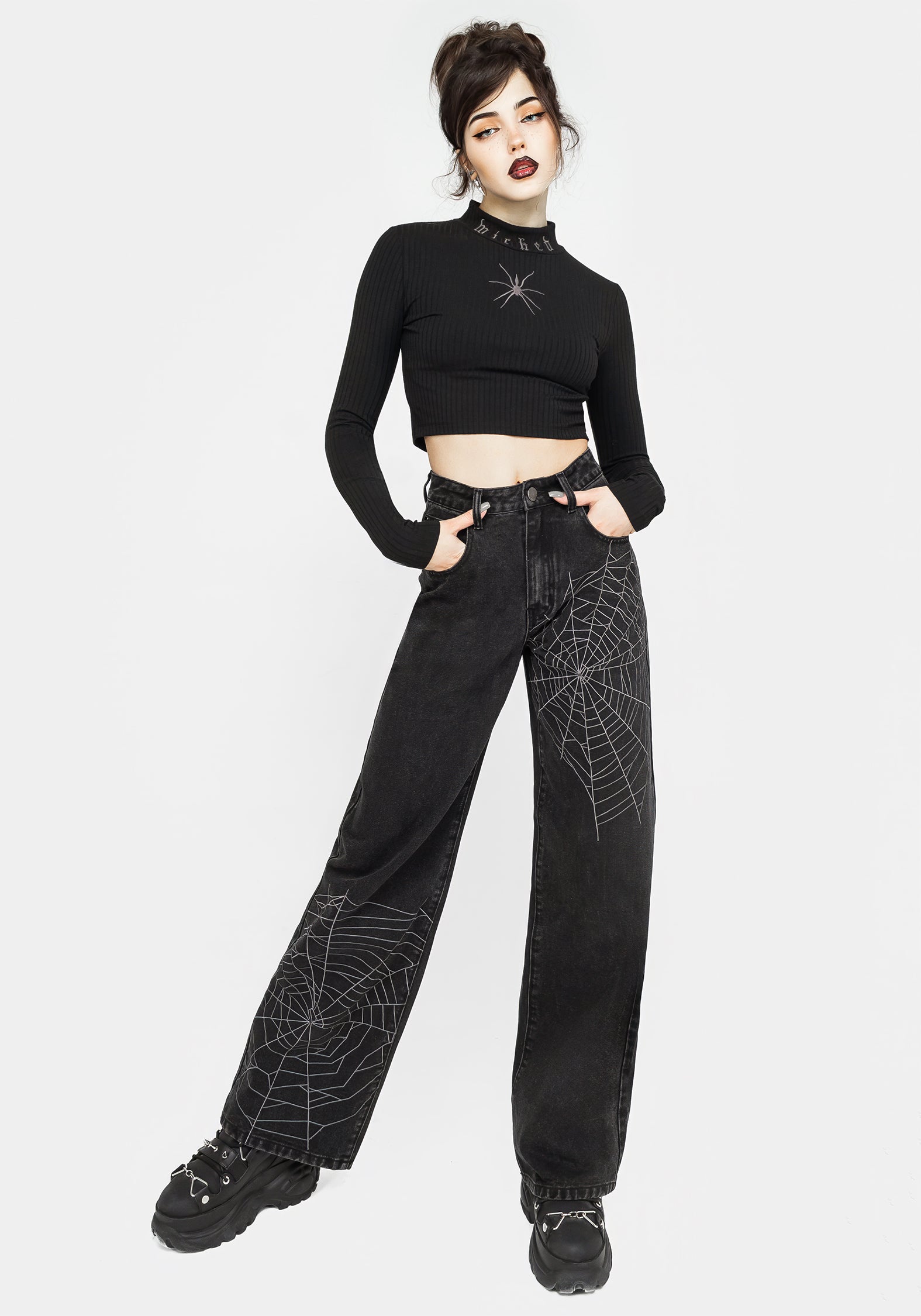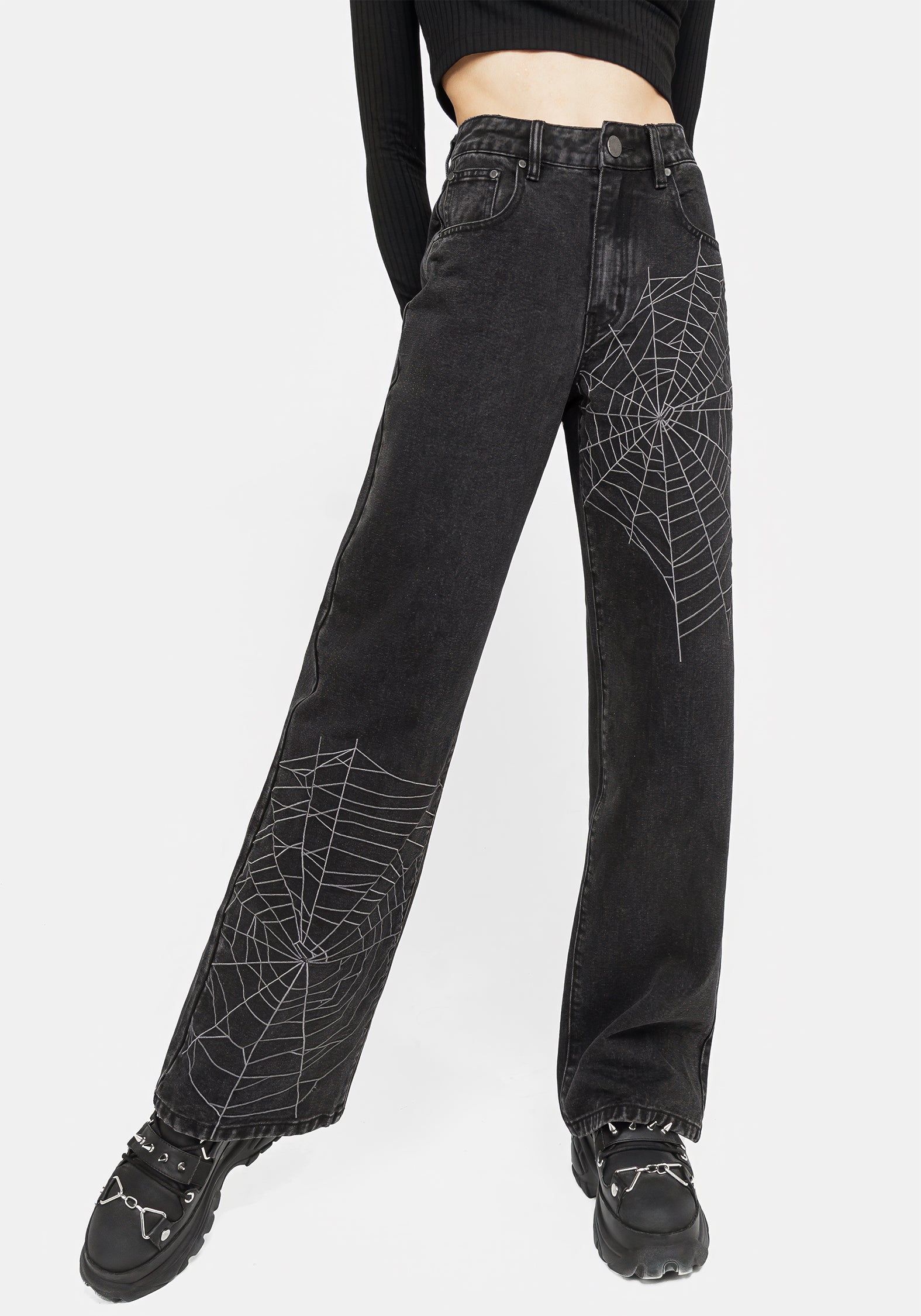 - Metallic grey spiderweb satin-stitched embroidery on thigh & leg