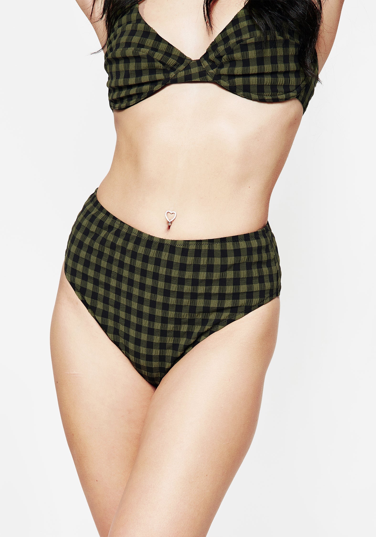 - Textured stretch jersey fabric with a gingham-effect black & green print