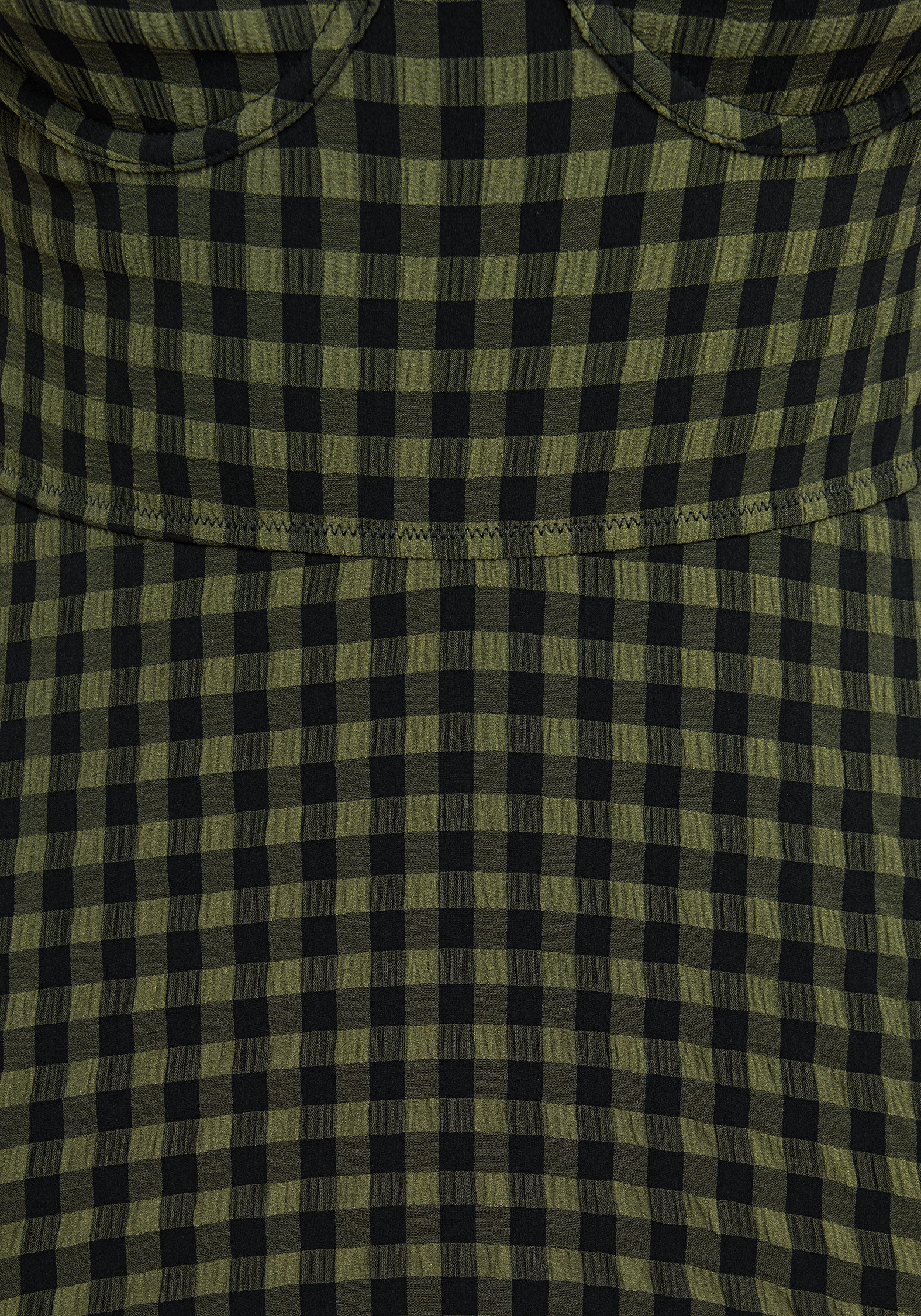 - Textured stretch jersey fabric with a gingham-effect black & green print