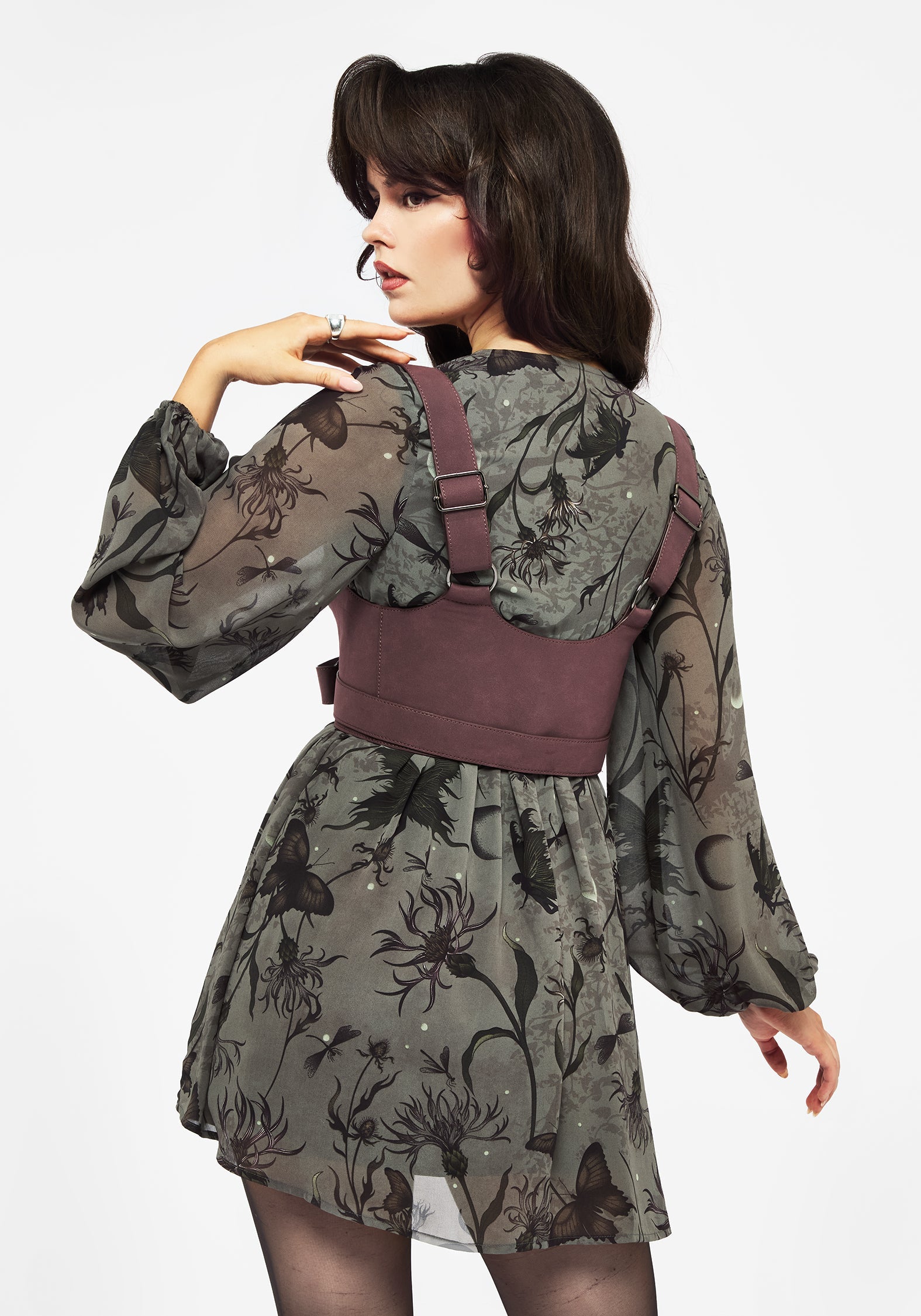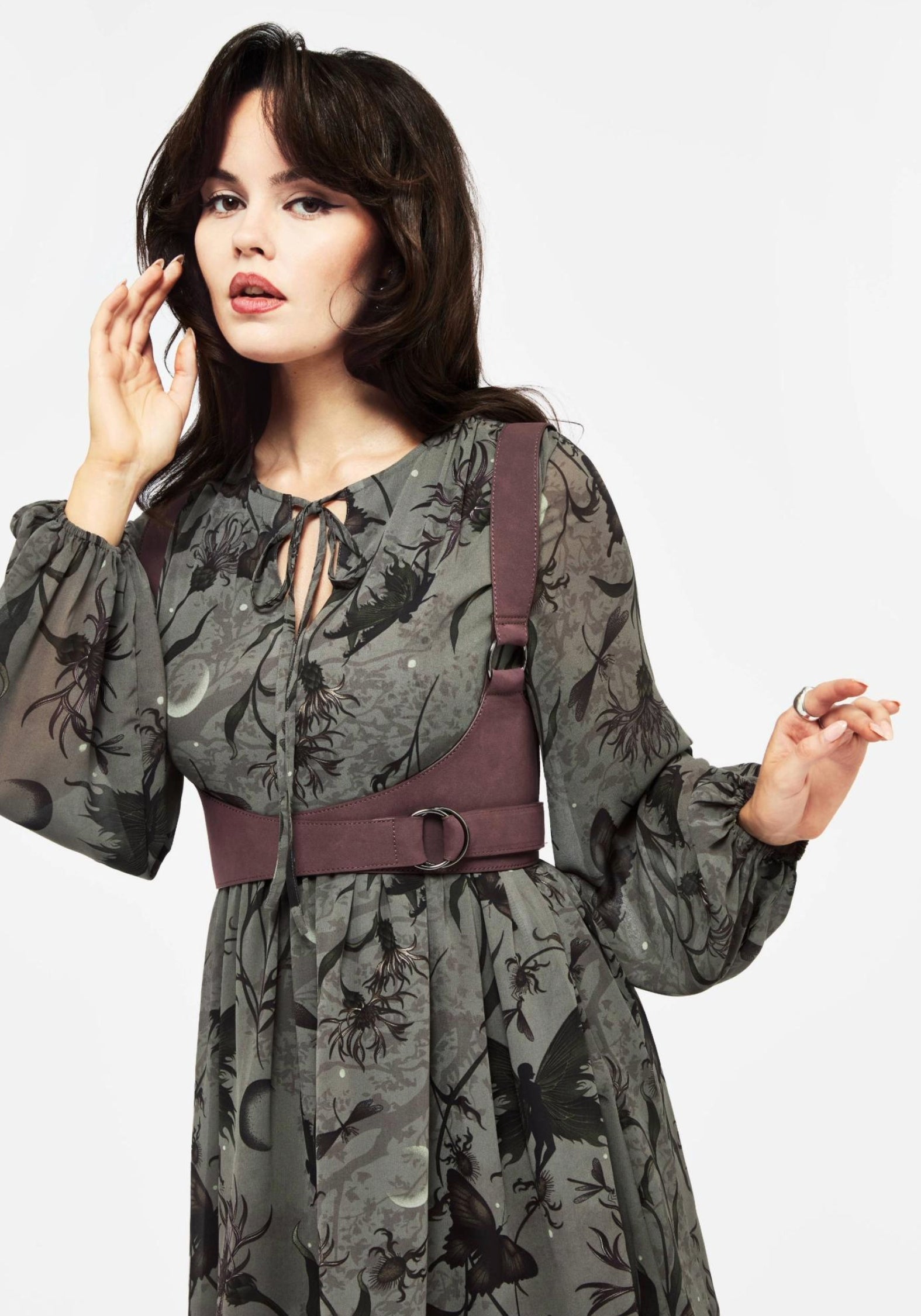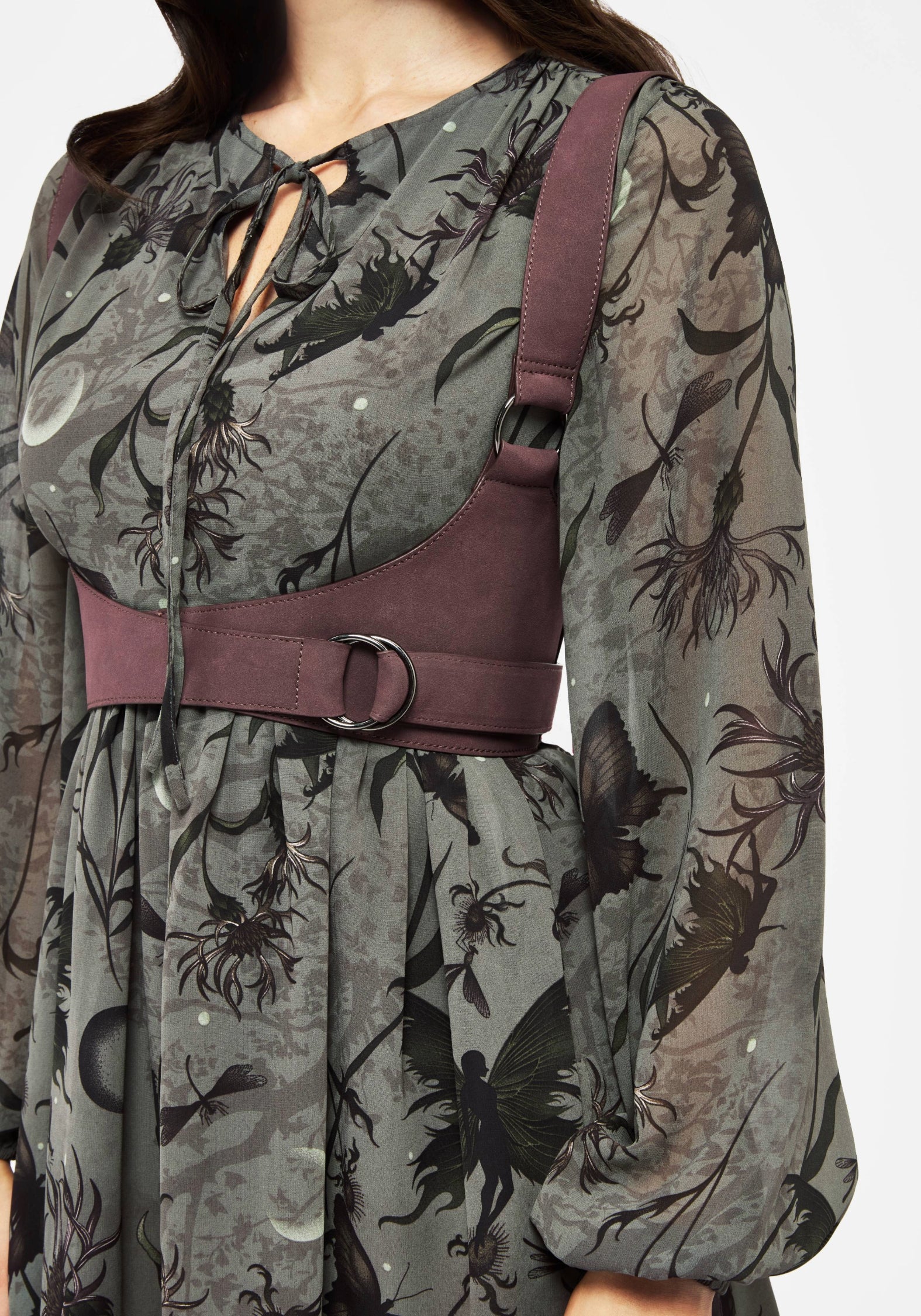 - Burgundy faux leather wrap harness