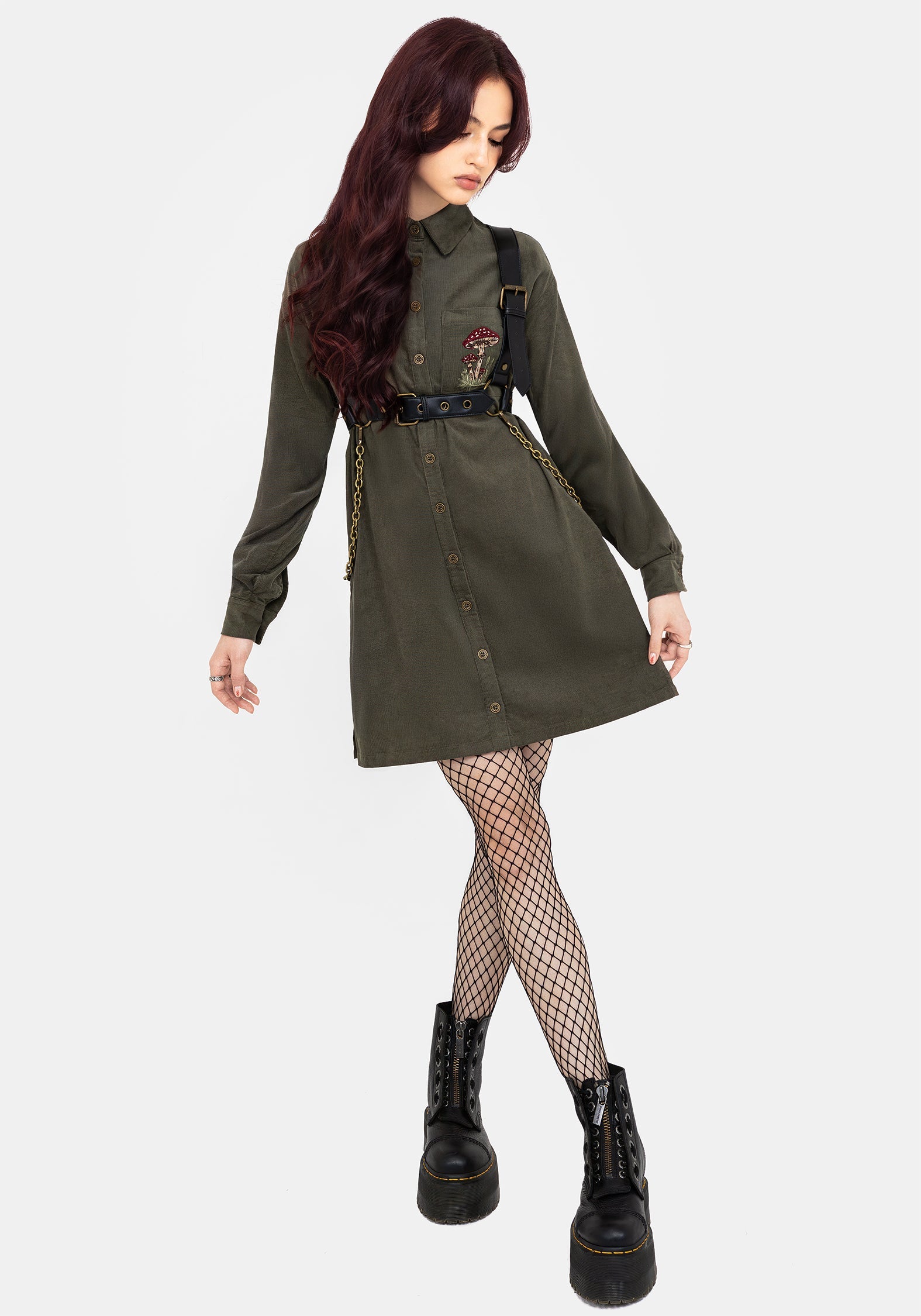 - Green Corduroy Mini Shirt Dress