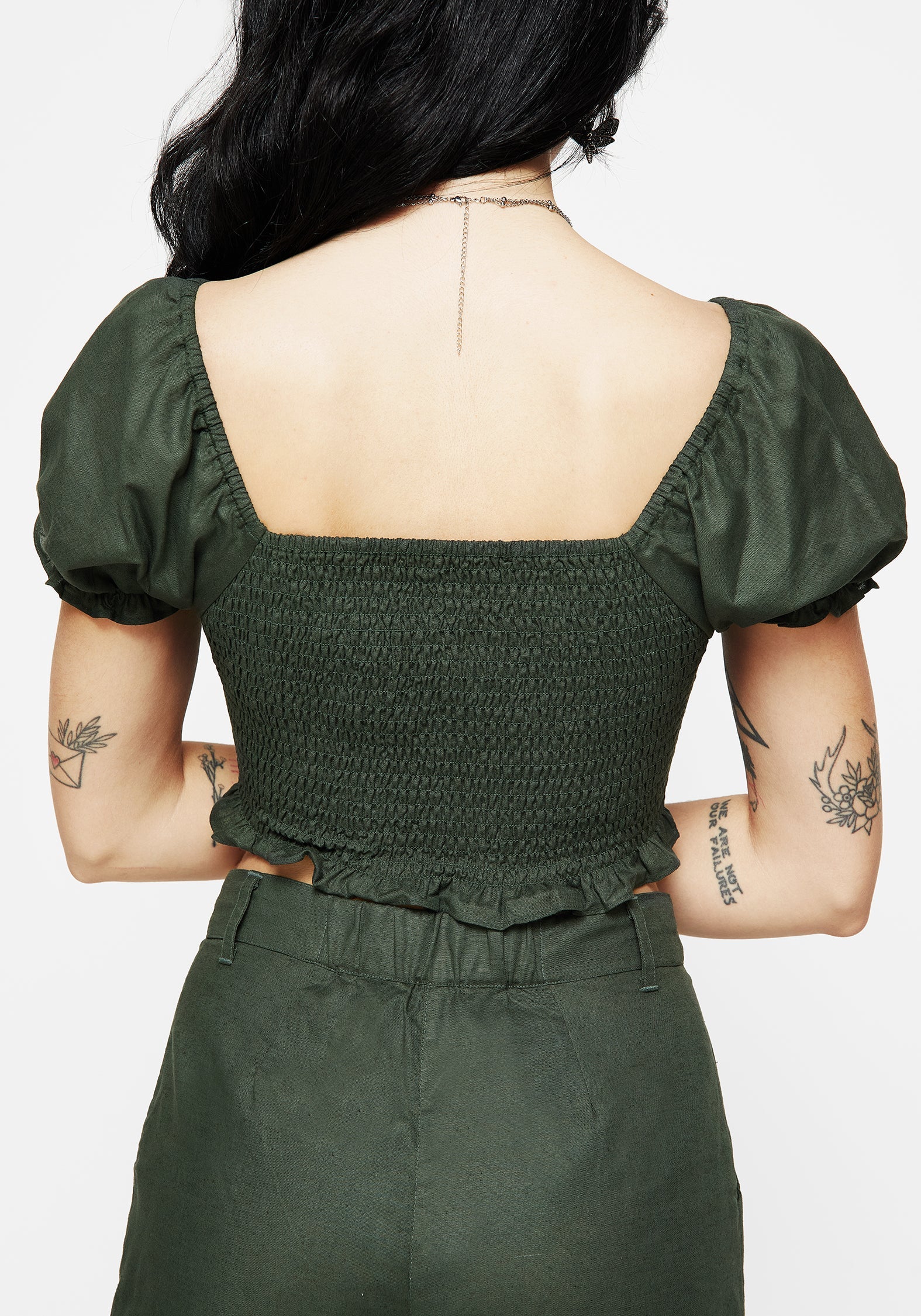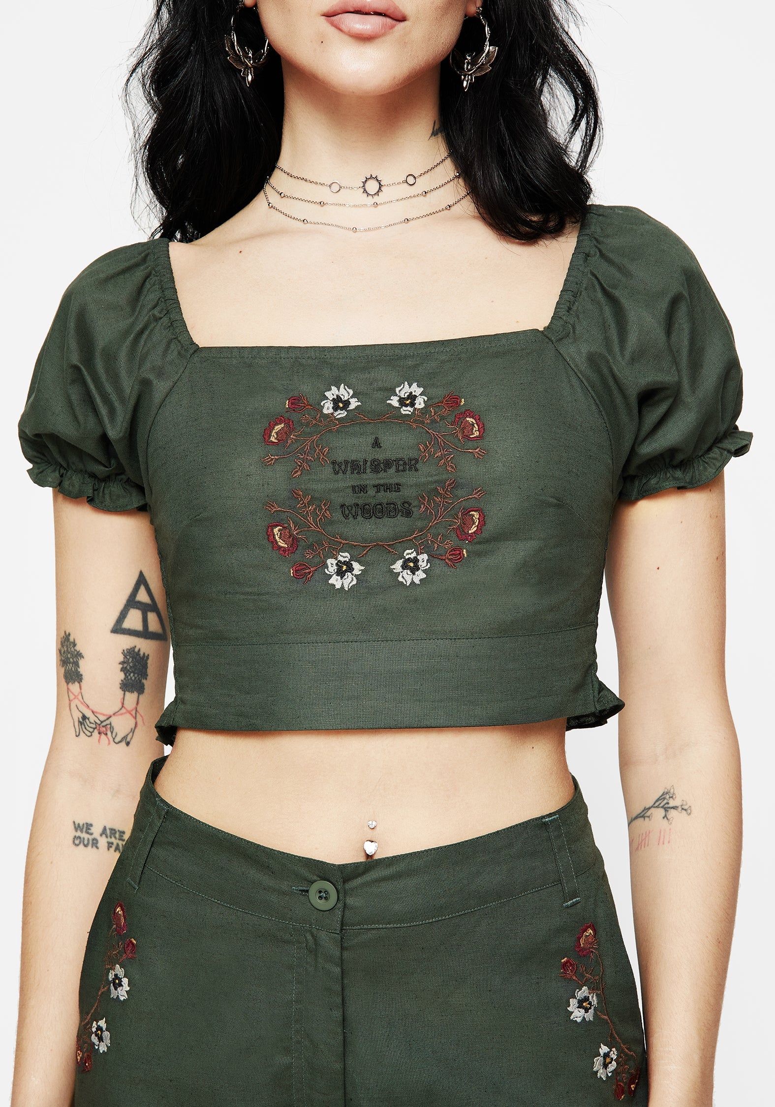 Whisper Embroidered Linen-Blend Smock Crop Top