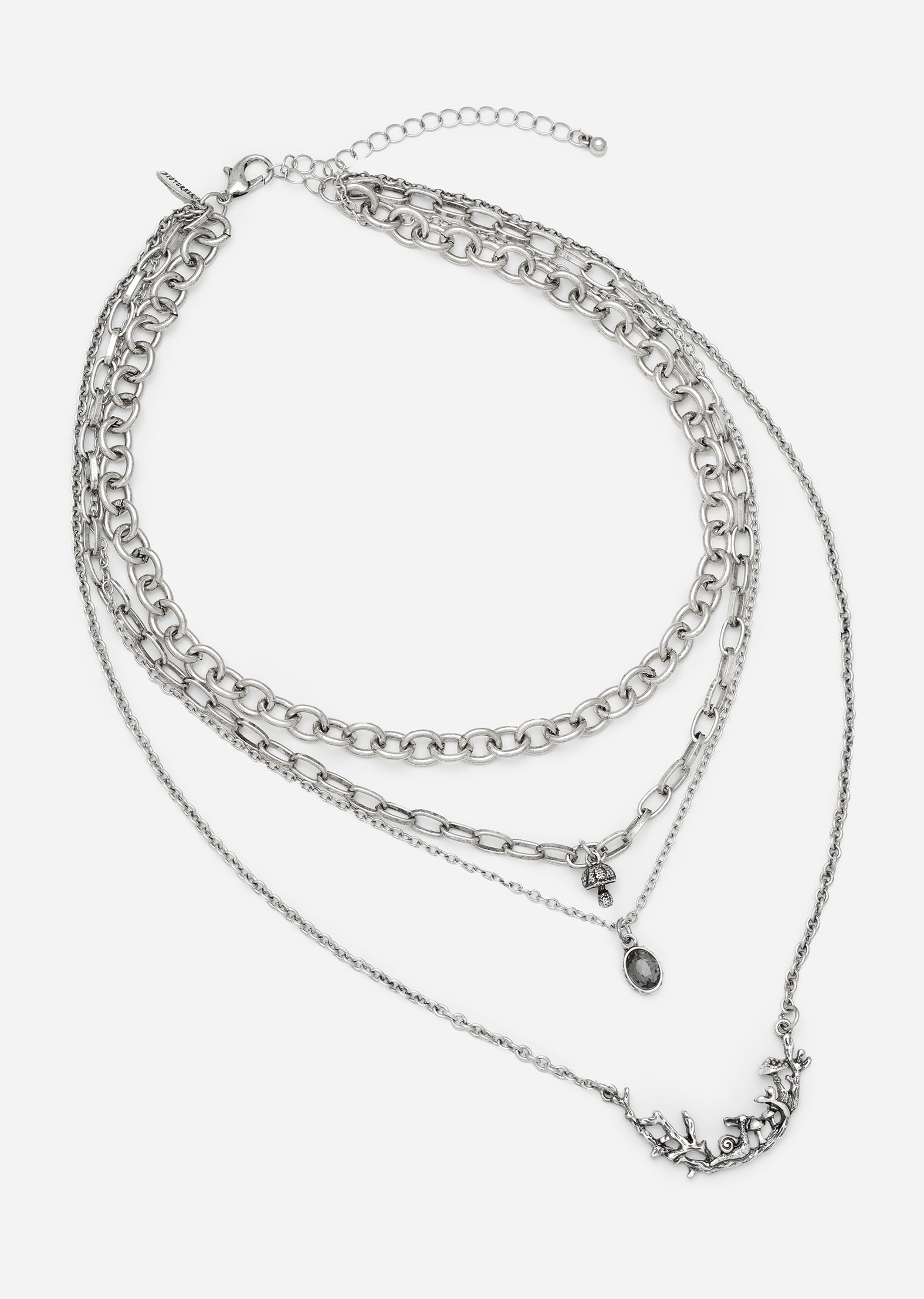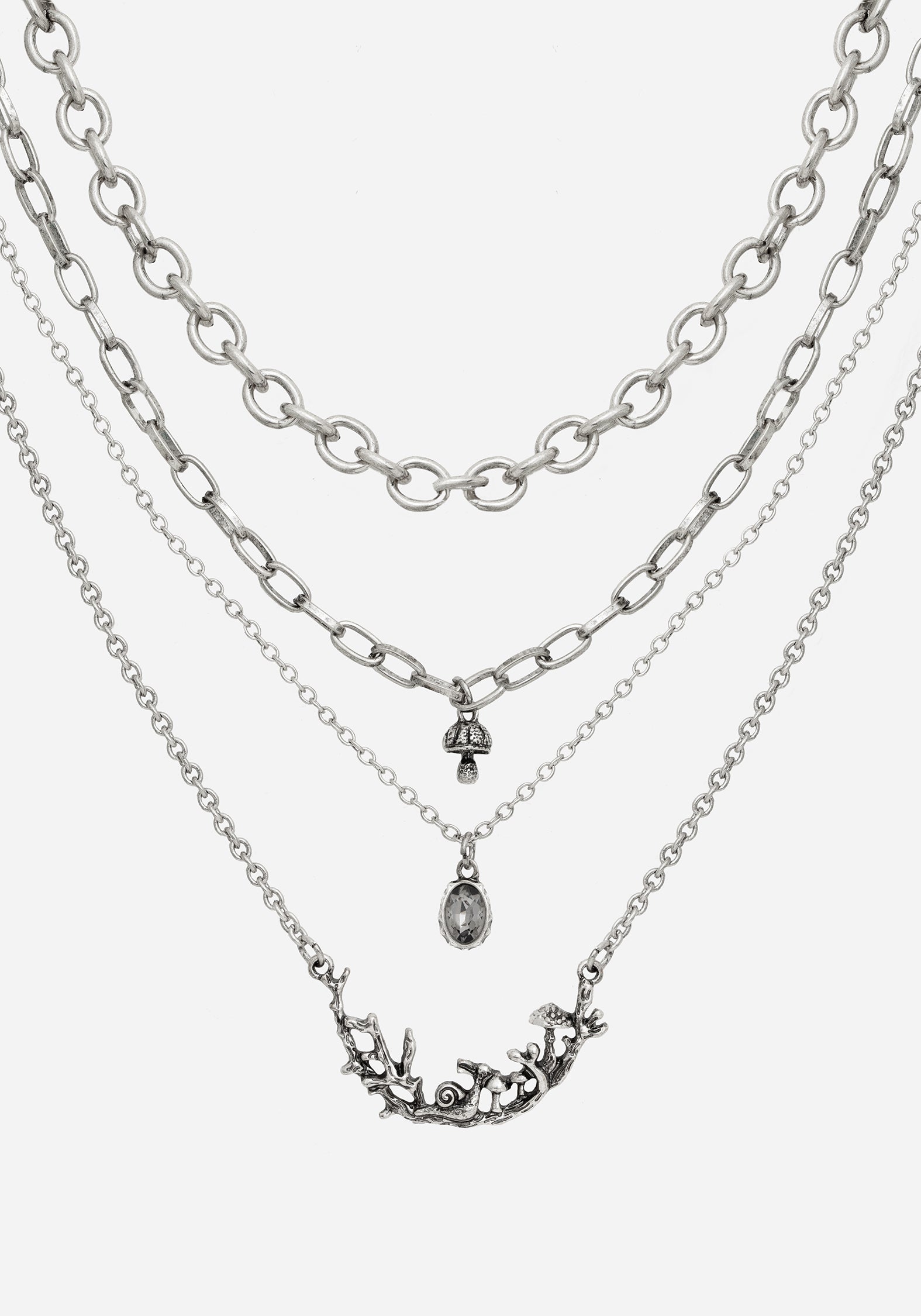 - 4 Different Size Chains with Toadstool, Gemstone and Leaf Design Pendants